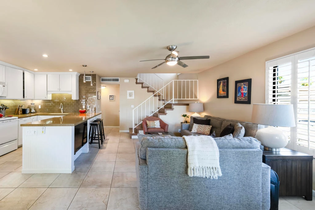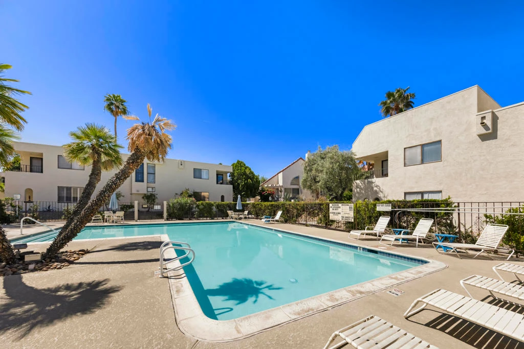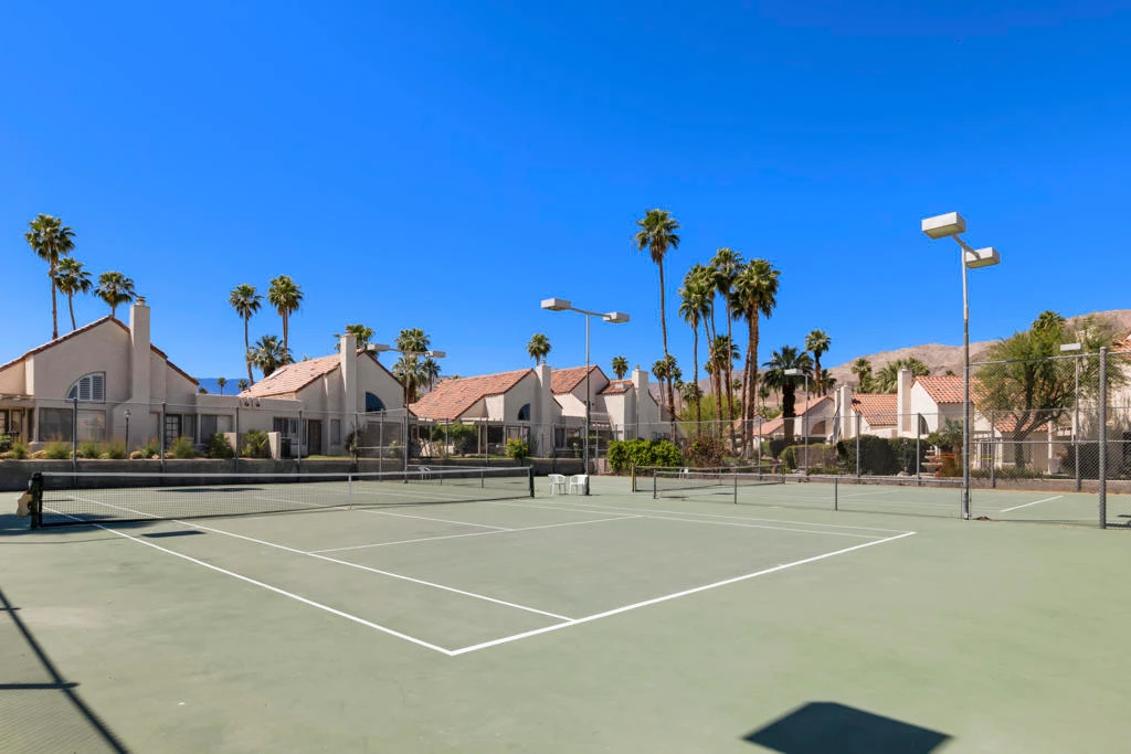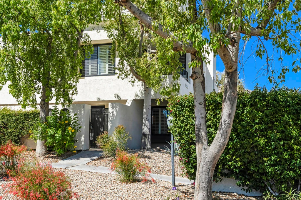 Welcome to this beautifully and fully renovated condo in the heart of Palm Desert, just steps from the iconic El Paseo. This is a rare opportunity to own a move-in ready residence in one of the most walkable and desirable locations in Palm Desert, where luxury shopping, dining, and desert lifestyle all come together. Perfectly suited for short term rental or personal use, the property has a proven STR history and offers strong income potential. Guests and owners are drawn to the easy access to restaurants, boutiques, and entertainment just steps away. The interior features a thoughtful layout with modern finishes throughout. The upstairs bathroom is spacious, refreshed and designed to serve both bedrooms comfortably. A stacked washer and dryer is conveniently located on the bedroom level. Outdoor living is a highlight with a private walled front patio, perfect for dining, BBQ or relaxing in privacy. And take in great views from the balcony off the bedroom. Enjoy resort style amenities, including a sparkling pool, spa, tennis courts and a community game room, creating lifestyle and vacation/rental appeal. Located just minutes from Palm Springs International Airport, world class golf and entertainment venues including Acrisure Arena and the McMalluum, this home offers exceptional convenience in the Coachella Valley. Perfect income producing investment, serene desert escape or full time residence, this condo offers effortless Palm Desert living in one turnkey package.