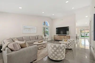 Approximately 1,920 square feet, this three-bedroom, three-bathroom house offers a range of desirable features. The property boasts a private pool, providing a refreshing oasis for relaxation. A covered patio extends the indoor-outdoor living experience, allowing residents to enjoy the pleasant climate. The home is equipped with an owned solar system, ensuring energy efficiency and cost savings.The three bedrooms include a primary bedroom, offering ample space and privacy. There are two full bathrooms and 1 half bath, catering to the needs of family and guests. The water filtration system enhances the quality of the home's water supply, promoting health and convenience.Complementing the living spaces is a two-car garage, along with a separate golf cart garage, providing ample storage and flexibility. The climate-controlled garage provides a comfortable environment for vehicle storage and additional living space. Recent renovations have given the home a contemporary, modern feel, with a well-appointed kitchen and updated security system. The great location, near the desirable El Paseo area, allows for easy access to local amenities and attractions.The property's thoughtful design and modern updates make it an ideal choice for those seeking a comfortable and convenient living experience.
