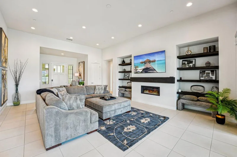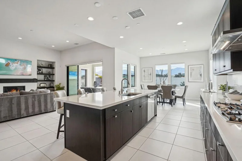 Experience refined desert living in the prestigious Montage community of Palm Desert. This upgraded 5-bedroom, 5.5-bath residence spans 3,251 square feet of thoughtfully designed open-concept living, where soaring ceilings and walls of glass invite abundant natural light and seamless indoor-outdoor flow.The chef's kitchen anchors the home with granite countertops, upgraded cabinetry, stainless steel appliances, and an oversized island designed for gathering. Multiple entertaining spaces transition effortlessly to the backyard, creating an ideal setting for hosting or relaxing in privacy.Each bedroom offers a private en-suite bath, ensuring comfort and separation for family and guests alike. The attached casita -- complete with its own entrance, wet bar, refrigerator, and full 3-piece bath -- provides exceptional flexibility for visitors, extended stays, or a private office retreat.The resort-style backyard captures the essence of desert living, featuring an upgraded pool and spa, a built-in firepit, and a BBQ station -- all designed for privacy and open-sky exposure, with distant mountain peaks providing a warm desert backdrop at sunset, perfect for evening gatherings and seasonal entertaining.Additional highlights include owned solar, a 3-car garage, low HOA, and the convenience of being offered fully furnished. Whether as a full-time residence, seasonal escape, or income-producing investment, this Montage property delivers comfort, flexibility, and elevated desert living.