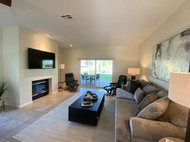 This lovely 3 bedroom property has been beautifully remodeled with a Designers Touch. The kitchen has soft close cabinets, stainless steele appliances, Hunter Douglas custom blinds, wine refrigerator, and inset lighting. As you relax in your living room you will find a Smart TV, and gas fireplace with views of the pool just steps away. The Master Suite has a custom built walk in closet, King size bed and a master bathroom with separate shower and bathtub. The guest bedroom has a King bed with walk in closet and private bath. The additional bedroom has a Queen pull out sleeper sofa for those additional guests. You will find Desert Falls Scottish Links Championship Golf Course, rated as one of the top 10 courses by the SCPGA and awarded a 4 -star rating from Golf Digests ''Best Places to Play''! Desert Falls Country Club is centrally located in the middle of the valley within walking distance to restaurants and shopping and only a few miles to top entertainment venues. Acrisure Arena, Agua Caliente Spa & Casino, the McCallum Theatre and El Paseo: a 2-mile boulevard of upscale Galleries, Boutiques, and fine Dining Restaurants are all within just a few minutes' drive. Enjoy Tennis, Pickleball, Fitness Center, 29+ Pools & Spas, Wi-Fi, Cable, Building, Grounds, and Landscaping maintenance, Guarded Gate and 24-hour Security amenities all included. You can choose to golf on a pay as you play.