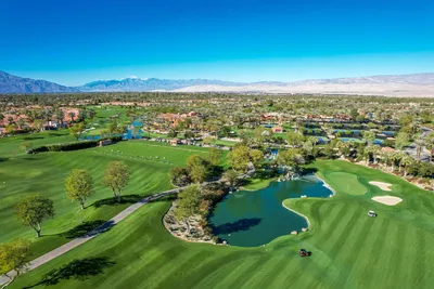 Available May 2026 at $3,500 and available November through January 15 2027 at $8,500/month. Not available for 2027 season. Spa Home with panoramic mountain & golf course views, elevated lot overlooking #18 Arroyo. Extended stone patio features private spa, fire pit, awnings and built-in BBQ. This Bougainvillea 1 floor plan is very popular due to open floor plan featuring living, dining, wet bar and kitchen all-encompassing the patio w/those great views! The private master suite opens right out on to the patio where you can take in the gorgeous views and comfort of your own spa. Master has walk-in closet and en suite bath with dual vanities, bathtub and separate shower. Bougainvillea 1 model has 2 en suite guest rooms - 1 in the front of the home and 1 on the opposite side of the home. Gorgeous pavers line your driveway and courtyard walkway, with a beautiful glass front door at your entry. Indian Ridge Country Club is one of the desert's premier private country club communities with a great central location in the Palm Springs area, close to Interstate 10, El Paseo and the airport. Use of owners GOLF membership available for additional cost and 3 month minimum.