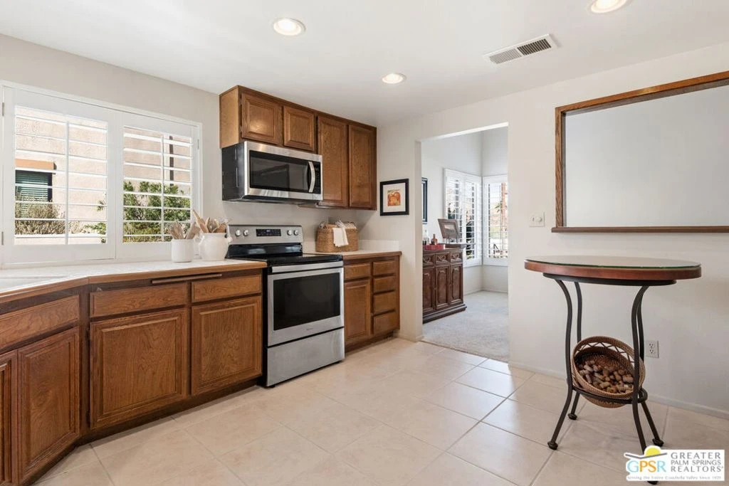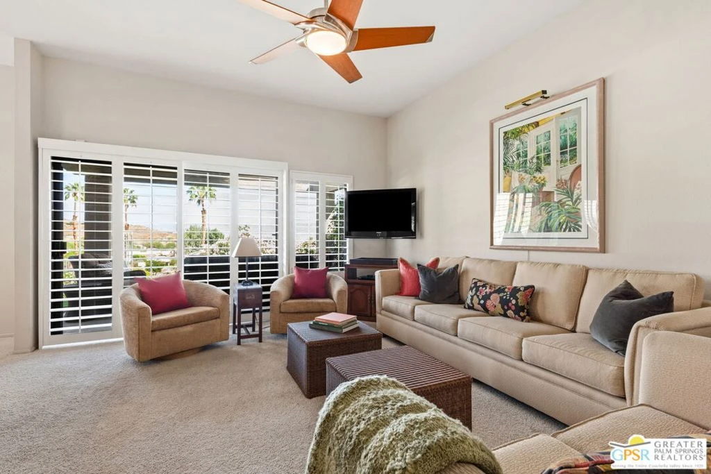 Discover one of the finest locations in the sought-after Sommerset community of South Palm Desert a well-cared-for, single-story 3-bedroom, 2-bath condominium positioned to capture some of the absolute best views the development has to offer. As the sun sets over the Coachella Valley, the desert floor comes alive with glittering city lights, all visible from the private patio. By day, sweeping views of the beautifully landscaped greenbelts and open desert create a serene, resort-like backdrop that makes this one of the most desirable locations in the entire complex. This home is clean, solid, and move-in ready. While not upgraded, it has been consistently well-maintained and presents an excellent opportunity for a buyer looking to own a spacious 3-bedroom floor plan at one of the most competitive price points currently available in Sommerset where remodeled and upgraded units regularly sell for significantly more. The flexible third bedroom is currently configured as an office and easily converts back to a full bedroom to suit a variety of needs. The functional floor plan features an open living and dining area, an attached garage with direct access, and a convenient interior laundry closet. Central heating and air conditioning keep the home comfortable year-round in the desert climate. Residents of Sommerset enjoy resort-style amenities including 11 community pools and spas, 3 lit tennis courts, 4 lit pickleball courts, expansive lush greenbelts, ample guest parking, and on-site property management all within a beautifully landscaped hillside setting. The community is ideally situated just minutes from world-renowned El Paseo, the Rodeo Drive of the Desert, offering luxury boutiques, acclaimed restaurants, and celebrated art galleries. The Living Desert Zoo & Gardens, the Art Smith Trailhead, championship golf courses, and the McCallum Theatre are all close at hand. An exceptional value in a premium location.