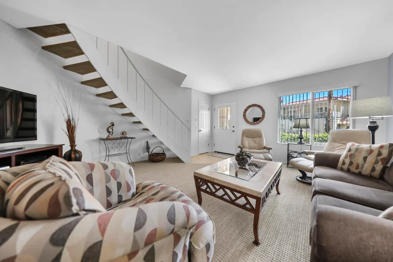 Here we present the ideal Deep Canyon Tennis Club fully updated 2 Bedroom and 2.5 Bath condo. It is wonderfully livable for full seasonal enjoyment, ideal for when family or guest come to call or for year-round living as well.Two fully remodeled upstairs Bedrooms with ensuite Baths offer privacy to you and guests. You have yours and they have theirs. Downstairs, walk into a spacious and comfortable living room with TV viewing. A fully remodeled kitchen makes daily food preps or dinner party service a snap. Dining is close to the kitchen or walk through sliders to the beauty of your back patio for a lunch or dinner or just sitting out and enjoying a spacious environment under the shade of your own mature orange tree. The back patio gate leads out to spacious green space where a pool with a hot tub is only an easy stroll away. Deep Canyon offers a host of recreational options. The club features 12 tennis courts, most of them close to the central clubhouse and workout room and main pool area. Here folks gather daily for games or simply to enjoy some social time gathered around the tennis pro shop. On the far side of the property you'll find more recreational excitement on 6 very active Pickleball courts. For the more sublime, enjoy a game of Bocce adjacent to the tennis pro shop or putt and practice chip on one of two nearby well-maintained golf greens. You can find beauty on this property almost anywhere. There is lots of green space, 12 pool and 4 hot tubs, ample fruit trees and lots of fine views. Come and discover easy living at this beautiful townhouse condo. Its located in the heart of the Deep Canyon community and within easy reach of all of the club's terrific amenities. What a home you will find here! Come and discover it today!