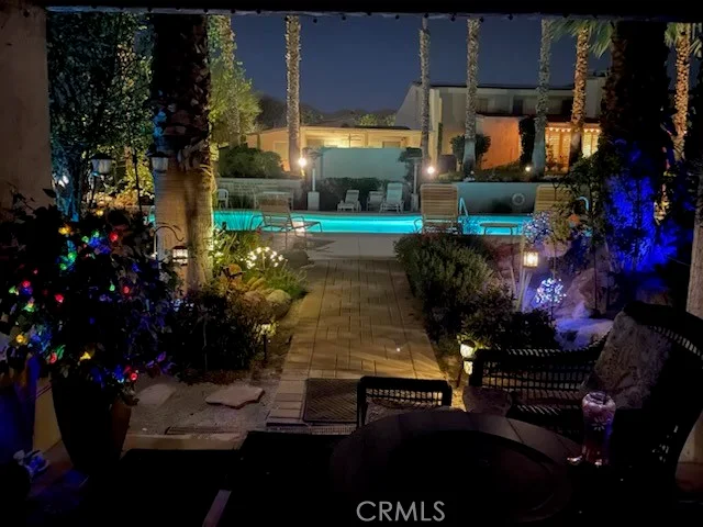 Beautifully situated behind the gates of the desirable Ironwood community in Palm Desert, this charming 2-bedroom, 2-bath condo offers the perfect blend of comfort, scenery, and resort-style living. Ideally positioned with a southwest-facing view overlooking the pool, this home captures stunning desert sunsets and creates the feeling of being on vacation every day. The open floor plan provides a bright and inviting living space, seamlessly connecting the living, dining, and kitchen areas. Just off the living room, a spacious patio is designed as a relaxing retreat—perfect for BBQs, reading a good book, or unwinding with a glass of wine while enjoying views of the pool (just steps away) and the colorful evening sky. The primary bedroom features a sliding glass door that opens directly to the patio with pool views, creating a peaceful indoor-outdoor flow. The primary bathroom includes a walk-in jetted tub with shower head for added comfort and accessibility. The second bedroom offers its own private patio, providing a quiet space for guests or a home office. Additional highlights include an indoor laundry area with a new washer and dryer, a large two-car covered carport, and several recent upgrades including newer windows, newer water heater, a new tile roof, rain gutters, and leased solar. Located just minutes from the world-class dining and shopping of El Paseo, Ironwood residents have access to membership to the two beautiful golf courses (North Course & South Course), the racquet club featuring 9 tennis courts & 10 pickleball courts and a clubhouse—all within a secure, gated community. Short term rentals (7 days or more) are permitted. This is desert living at its best.
