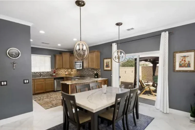 Completely upgraded home that is move in ready! Italian porcelain tile throughout most of the home. Crown moulding, and baseboards have been added along with new paint, rocker light switches, chandeliers and window treatments. Enter into a bright, open floor plan. The gourmet kitchen includes an island, LG fridge, Jenn Air convection oven, and an upgraded backsplash. Several sliding doors to the backyard. All 3 bedrooms have built in granite desks / office areas, upgraded porcelain floors and custom window treatments. Over $100,000 in upgrades in the backyard itself. Pavers, sun shades, fruit trees, designated sitting areas and 2 BBQ's. The garage includes a tankless water heater & security door. The low monthly HOA includes cable, internet and community gates. This home is close to the freeway, shopping, hospital, and more! You must see this home!