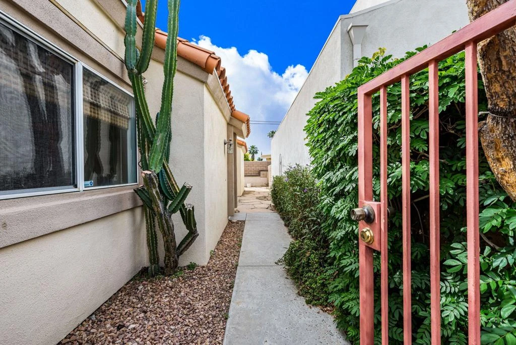 Welcome to this beautifully updated two-story single-family home in Palm Desert. Featuring 3 spacious bedrooms, all with ensuite baths, this home offers comfort and privacy throughout. Step inside to a light-filled interior featuring soaring ceilings, fresh paint, and no carpet, creating a clean, modern aesthetic. The custom upgrades throughout this home showcase quality materials and stylish finishes, while major improvements including a new roof and HVAC system offer lasting peace of mind.Enjoy a private upstairs primary retreat, a quiet street location with no neighboring property directly behind you, and a charming courtyard that wraps around to a spacious back patio, perfect for entertaining or creating your own desert sanctuary. Complete with a built-in BBQ, low-maintenance landscaping, and an attached 2-car garage, this home has it all, plus no HOA dues. Conveniently located near top-rated schools, restaurants, and shopping.