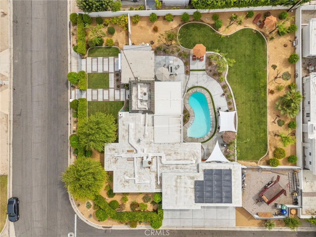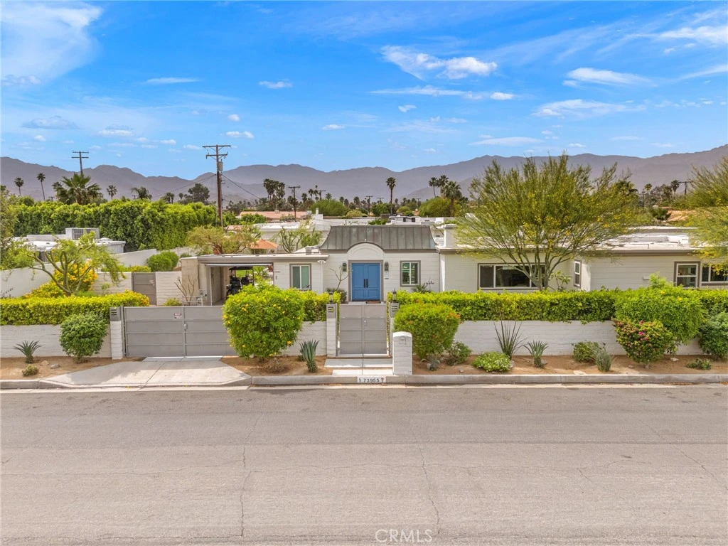 A rare mid-century estate, formerly the residence of Donald P. Kennedy, renowned philanthropist and influential proprietor of First American Title Company. This stunning four-bedroom, 3-bathroom estate is beautifully situated on nearly half an acre of meticulously manicured grounds, featuring a sparkling pool, expansive yard, a newer four-car garage perfect for a car enthusiast, and a separate golf cart garage with its own private double-gated entrance. Panoramic, snow-capped views of the San Jacinto Mountains, including San Gorgonio, the Santa Rosa Mountains and the Little San Bernardino range, create a breathtaking backdrop. Ideally located within walking distance - or a short golf cart ride- to the Shops at El Paseo, often haled as the 'Rodeo Drive of the Desert,' this estate offers the perfect blend of historic significance, luxury, and quintessential Palm Desert lifestyle. This property was meticulously renovated in 2021 including: Interior - all new windows, window coverings, glass sliding doors, laminate flooring, new complete kitchen and three bathrooms, interior paint throughout, LED lighting, switches and receptacles. Exterior - overhead electrical was placed underground electrical, solar panel fully paid, exterior block walls and locking gates, newly built four car garage, RV storage yard, new awnings in backyard patio for shade, full landscaping with expansive grass, mature trees and flowering plants, pool coping, jacuzzi and foam roof.