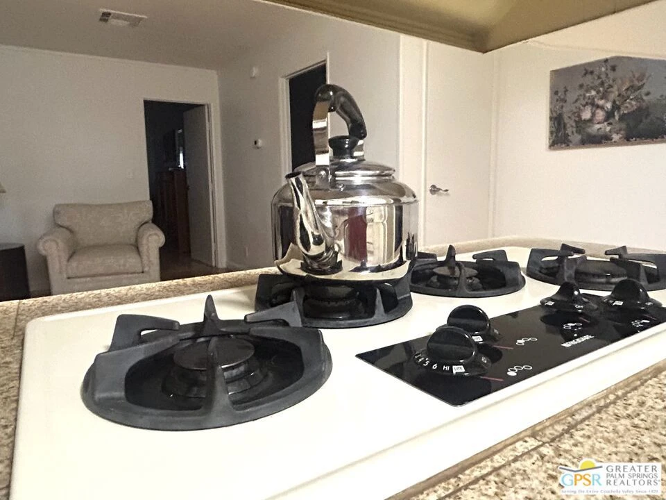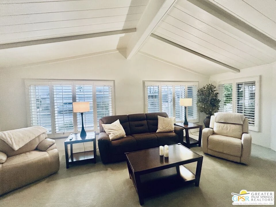 Welcome to your charming desert retreat in Portola Country Club! This bright and spacious approx. 1,734 sq. ft. manufactured home offers 2 bedrooms, 2 baths, plus a bonus room/office, filled with natural light, large picture windows, and plantation shutters throughout. The home features a mix of hardwood floors and carpet in the front living room. The fully equipped kitchen includes everything you need to entertain, with a Viking dishwasher, oven range, microwave, toaster oven, blender for morning smoothies, and all essential appliances. The primary suite features dual sinks, a sunken soaking tub, separate shower, and walk-in closet. Additional highlights include an in-home washer and dryer, a two-car covered carport, and a covered side patio perfect for lounging or entertaining. Available furnished or partially furnished with a 6-month to 1-year minimum lease and $2,500 security deposit. Cable, internet, trash, and gardener are included, while tenant pays gas, water, and electricity. Optional golf cart rental available for an additional $400 per month added to the monthly rent. Tenants enjoy full access to the amenities at Portola Country Club, including complimentary golf for two on the 18-hole par-3 course with a one-year lease. The community also features three pools and hotubs, pickleball and tennis courts, bocce ball, a remodeled clubhouse, fitness center, surrounding mountain views, and a secure enclosed dog run park perfect for pets to play and exercise safely. Conveniently located near El Paseo Shopping District and Living Desert Zoo and Gardens. "An Affordable Desert Getaway!"