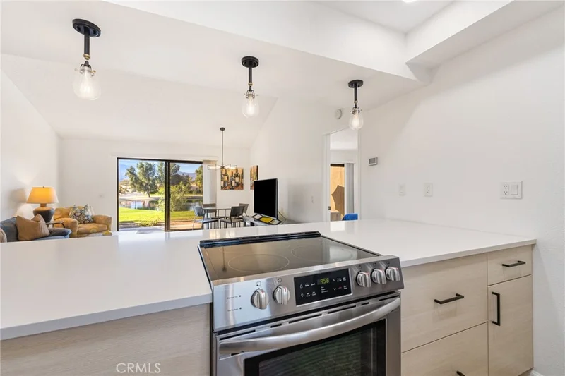 Welcome to 77247 Olympic Way, an exceptional lakefront retreat located behind the gates of Palm Desert Resort Country Club. Perfectly positioned with a sought-after southwest-facing orientation, this beautifully remodeled Vintage floor plan home captures breathtaking views of the lake, surrounding mountains, and unforgettable desert sunsets. The serene water setting is the perfect backdrop for relaxing on the patio and entertaining. Inside, the home has been thoughtfully updated with modern finishes throughout. Highlights include new stone countertops, sleek contemporary light fixtures, custom cabinetry in both the kitchen and bathrooms, updated tile flooring, and stunning custom tile work in the kitchen and bath areas. The barn-style shower doors add a touch of character while maintaining a clean, modern aesthetic. The furnishings are tastefully curated with a modern design, offering a move-in-ready opportunity. This property will be delivered turnkey furnished. Step outside to a spacious patio overlooking the lake — the perfect space for morning coffee, sunset cocktails, or hosting friends while enjoying panoramic mountain and water views. Residents of Palm Desert Resort Country Club enjoy resort-style amenities including pickleball, tennis, bocce ball, a clubhouse, café, pro shop, and a dog play area. The community also allows short-term rentals, offering excellent flexibility for full-time living, seasonal use, or investment potential. Ideally located just minutes from Acrisure Arena and the fine dining and upscale shopping of El Paseo, this home delivers the perfect blend of luxury, location, and lifestyle. Experience desert living at its finest.