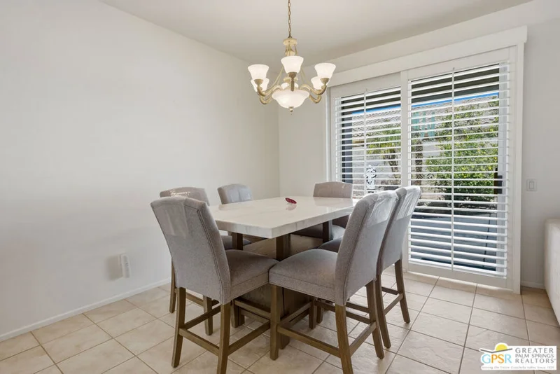 Welcome to Sun City Palm Desert where resort-style living is simply part of everyday life. Behind the 24-hour guard-gated entrance, you'll discover an extraordinary array of amenities designed for both recreation and relaxation. Enjoy 20 pickleball and tennis courts, two beautifully maintained 18-hole golf courses with a driving range, five heated swimming pools, and three stunning clubhouses that serve as vibrant social hubs. Residents also enjoy billiards, a grand ballroom, two on-site restaurants, a martini and coffee bar, a theater, technology center, library, arts & crafts, two dog parks, and RV parking. With more than 80 clubs and interest groups, there's truly something for everyone whether your passion is fitness, creativity, learning, or simply connecting with neighbors. Ideally located near the Mountain View Clubhouse, this popular Montego model offers 2 bedrooms plus an office/den (or optional third bedroom) and a spacious two-car attached garage. A transom window above the entry door welcomes natural light, setting the tone for the home's bright, open great-room design. Tile flooring flows throughout the main living areas, while plush carpeting adds comfort in the bedrooms. White plantation shutters provide timeless style and privacy. The kitchen features warm maple cabinetry, Corian countertops, and a cheerful breakfast nook perfect for casual dining. The generous primary suite offers direct access to the backyard, a large walk-in closet, dual vanities, and a walk-in shower. Thoughtful separation between the primary and guest bedroom ensures privacy for both owners and visitors. Step outside to your private rear patio, surrounded by mature landscaping that creates a serene setting with no direct neighboring views. Whether enjoying morning coffee or relaxing under the covered patio in the evening, this outdoor space offers peaceful desert living at its finest. Experience a beautifully maintained home within a vibrant, amenity-rich community where every day truly feels like a vacation.