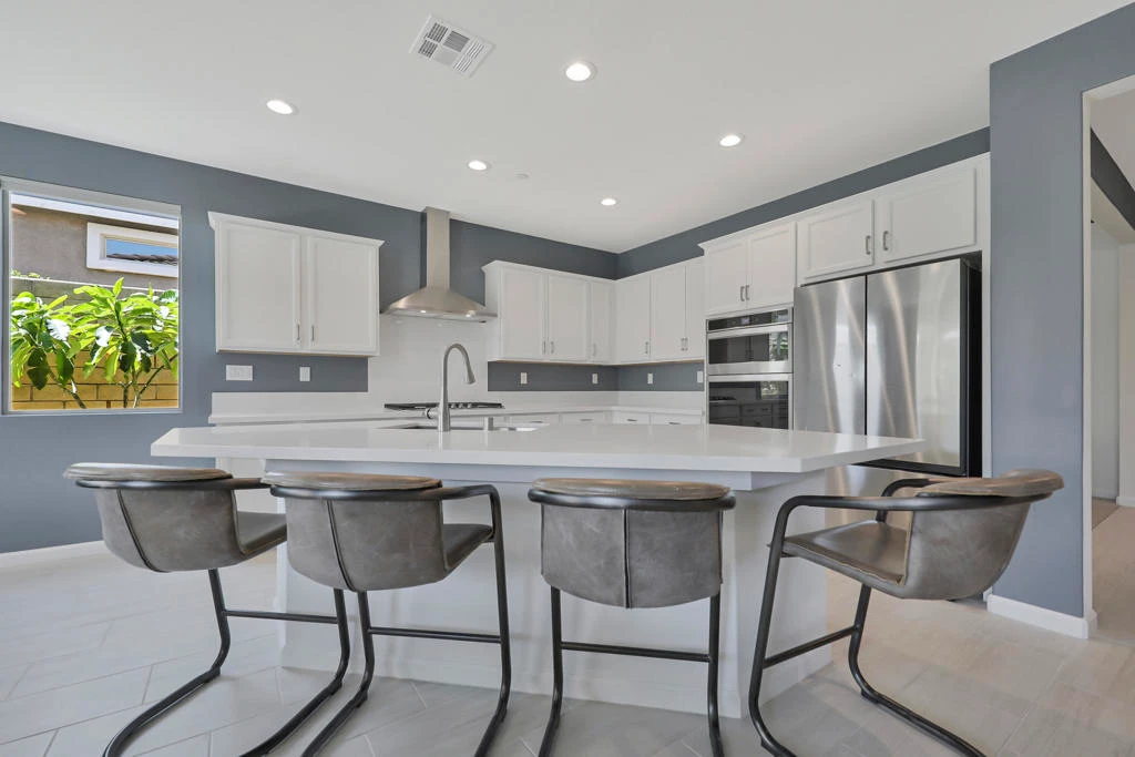 Innovative and Contemporary, this Comfortable Modern Design Features High Ceilings, Open Floor Plan, Light Porcelain Tile Floors, and Immaculate White Cabinetry and Countertops throughout. Gourmet Kitchen with Spacious Countertops, Upgraded Whirlpool Stainless Appliances, Island with Bar Seating and Pantry. Primary Bedroom with En-Suite Bath and Luxurious Oversized Walk-In Closet. Secondary Guest Room Privately Located away from Primary. This Popular Silver Creek Plan also features a Generous Sized Office which could easily be made into a Third Bedroom. Surround Sound and Motorized Shades in Great Room. Glass Sliders Open Great Room/Dining/Kitchen to Covered Patio--Perfect for Indoor Outdoor Entertaining with Family and Friends. Professionally Designed Backyard Landscape with Lighting and Irrigation. Owned Solar Panels. So many upgrades and Move-in Ready! Seize the Day and get into the Fun that this Community has to offer! Community Club House, Pool, Spa, Fitness, Pickle Ball and Bocce Court! Furnishings Negotiable outside of Escrow.