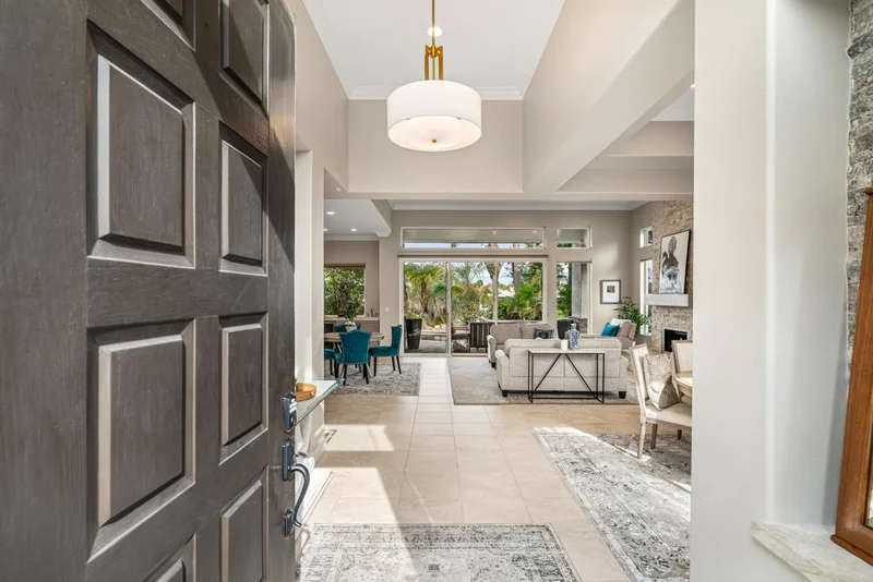 936 Mesa Grande showcases the sought-after Bougainvillea 2 floor plan, perfectly positioned on the 2nd hole of the Arroyo Golf Course within prestigious Indian Ridge Country Club. A private, paver-lined courtyard welcomes you with a tranquil water feature, setting the tone for the resort-style living found throughout the home. Inside, the open-concept design effortlessly blends indoor and outdoor spaces, ideal for both everyday living and entertaining. The luxury kitchen, living, and dining areas open to a generous covered patio featuring a private pool and spa, multiple seating and dining areas, a fire pit, and built-in grill--all framed by sweeping golf course and mountain views. The primary suite is a spacious retreat with a walk-in closet and spa-inspired bath, while two guest ensuite bedrooms, a powder room, and a dedicated laundry area complete the bedroom wing. Additional highlights include a two-car plus golf cart air-conditioned garage with Tesla charger and abundant storage, along with owned solar for energy efficiency and low utility costs. And best of all, the home comes fully furnished (excluding artwork). Indian Ridge Country Club offers an exceptional lifestyle with two championship golf courses, a fitness center and spa, tennis and pickleball, two restaurants, and 38 community pools and spas. This is desert living at its finest.