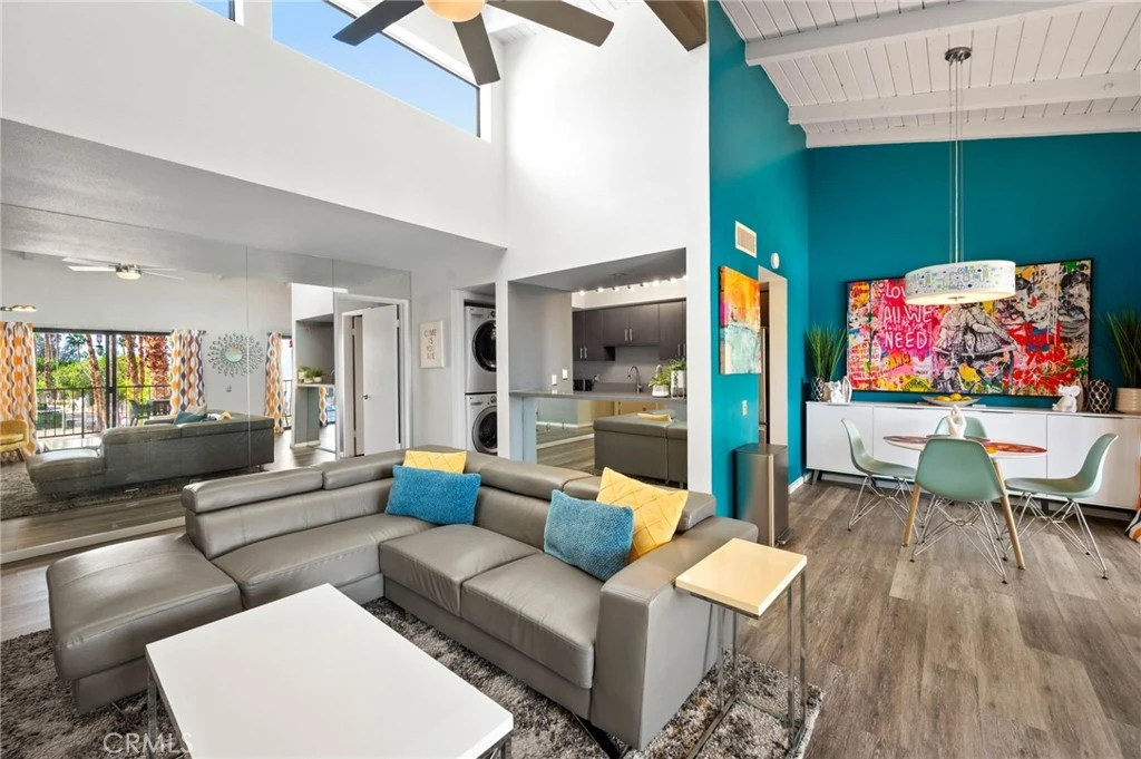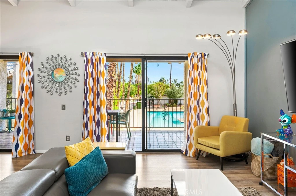 TURNKEY, top floor condo in the BEST location within the community overlooking the main pool and mountain views. Welcome to Rancho La Paz, resort living in the highly sought-after Deepwell neighborhood—one of South Palm Springs’ most desirable and centrally located communities. Ideally positioned directly across from Smoketree Shopping Center and just minutes from downtown Palm Springs (approx. 5-minute drive), this residence offers effortless access to the city’s best dining, shopping, art galleries, and nightlife. This thoughtfully designed floor plan features two spacious ensuite bedrooms positioned on opposite ends of the Great Room, providing maximum privacy—ideal for guests, roommates, or a second-home retreat. The kitchen is upgraded with granite countertops and new stainless steel appliances, opening seamlessly into the main living space. Soaring cathedral ceilings with clerestory windows fill the Great Room and dining area with natural light, creating an open, airy ambiance that embodies the Palm Springs lifestyle. The home has been recently painted throughout and newer laminate flooring offering a clean, move-in-ready presentation. Step outside to your expansive private balcony patio spanning the full width of the home, accessible from both the living room and primary suite. Enjoy peaceful pool, treetop and mountain views and indoor-outdoor living year-round. Within the community, residents enjoy resort-style amenities including: 3 Pools & Spas, Tennis & Pickleball Courts, Dog Park, Beautifully landscaped, well-maintained grounds, Dedicated covered parking, Unmatched Location & Lifestyle: Walking distance to Koffi, Elmer’s, and Smoketree Shopping Center, 5 minutes to Downtown Palm Springs, Close to iconic hiking trails including Indian Canyons & Tahquitz Canyon, Near Palm Springs Art Museum and cultural attractions, Convenient access to golf courses, resorts, and Palm Springs International Airport. HOA allows short term rentals 30 days and longer. Whether you're seeking a full-time residence, weekend getaway, or investment property, this home delivers the perfect blend of privacy, convenience, and classic Palm Springs living.
