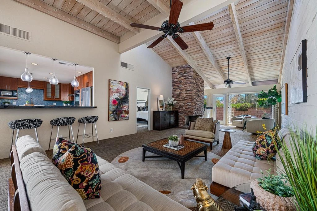 Exceptional Value in Palm Springs' Iconic Deep Well RanchWelcome to a rare opportunity in one of Palm Springs' most sought-after neighborhoods, Deep Well Ranch. Bathed in warm desert light and framed by stunning mountain views, this spacious 3-bedroom, 2-bath residence offers 2,054 sq. ft. of comfortable, character-rich living--at an exceptional value. Designed by renowned architect Barry Berkus, this home showcases authentic Spanish-style elements including 12-inch adobe walls, soaring 14-foot beamed ceilings, clerestory windows, and whitewashed shiplap accents. The open, sun-filled floor plan seamlessly connects the living, dining, and kitchen areas--ideal for relaxed everyday living or entertaining friends and family. Step outside to your private patio, which opens directly onto a lush community greenbelt filled with mature trees, flowering desert plants, and the soothing sounds of songbirds--an ideal setting for morning coffee or evening gatherings.Located in southern Palm Springs, the guard-gated Deep Well Ranch neighborhood has recently completed multi-million-dollar infrastructure improvements, including newly paved streets, enhanced lighting, refreshed landscaping, and a forward-thinking, community-focused HOA. Additional highlights include, two-car garage, generous storage throughout, three community pools and spas. tennis / pickleball court, expansive walking paths 24/7. It's just minutes from Palm Springs favorites such as L'Horizon, Koffi, El Jefe, Mr. Lyons, and Smoketree Plaza. Whether you're seeking a full-time residence, seasonal retreat, or investment opportunity, this home offers remarkable value, architectural pedigree, and the chance to personalize or modernize at your own pace.Don't miss this opportunity to enjoy the Palm Springs lifestyle--now at a more attainable price point.