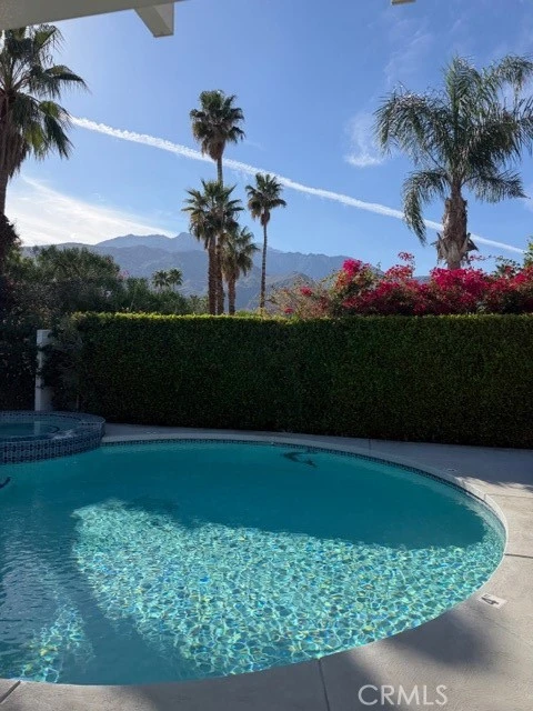 Beautifully remodeled and ideally positioned on a large corner lot in Vista Norte, this Palm Springs home offers expansive Mt. San Jacinto views, stylish upgrades, and strong investment appeal. Set high off the street, the property makes an immediate impression with thoughtful landscaping, warm landscape lighting, and a welcoming sense of arrival. Inside, the open-concept floor plan is both spacious and inviting, with a media/TV area, step-down lounge, and a dramatic raw travertine stone fireplace that gives the living room a grand yet relaxed feel. The living, dining, and expanded kitchen areas flow seamlessly together, all oriented to capture incredible mountain views. The kitchen has been beautifully updated with natural stone countertops, all-new tile flooring, stainless steel appliances, double pantries, and abundant cabinetry. The oversized primary suite opens directly to a private back patio and includes an upgraded bath with a travertine shower, upgraded vanity, and an additional closet for extra storage. Outdoors, the backyard is a true highlight, featuring a unique circular pool that beautifully anchors the space, a raised spa with waterfall, artificial turf, large pavers, mature hedges, and multiple lounging areas designed for privacy and relaxation. The wraparound Alumiwood shade structure allows soft natural light to come through while helping keep the home cool during warmer months. A freestanding air-conditioned cabana adds flexibility for use as an office, studio, lounge, or bonus space, while Pentair pool equipment with ScreenLogic app control adds modern convenience. Complete with a three-car garage, fee land ownership, and the added benefit of short-term rental licenses being available in Vista Norte, this is a standout opportunity for full-time living, a desert retreat, or an income-producing investment.