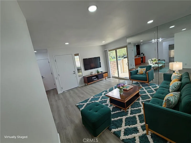 Completely remodeled from top to bottom and never lived in since the renovation. This Palm Springs condo has undergone a true full-scale remodel with high-quality finishes throughout—everything is brand new and no expense was spared. The home features a brand-new remodeled kitchen with modern Euro-style cabinetry, marble countertops, a glass tile backsplash, and all-new smart app-enabled high-end Samsung appliances, including a dual oven and microwave oven. Just off the kitchen is a custom-designed tiki bar with a wine cooler and sink, creating a unique built-in entertaining space. Luxury vinyl flooring and dimmable LED lighting run throughout the entire condo. The bathroom was completely remodeled with brand-new tile, vanity, and lighting. All new energy-efficient windows and patio doors enhance comfort and efficiency, and the home also includes a brand-new tankless water heater. The fully redesigned yard includes a large private patio located near the pool. Located in one of the rare Palm Springs condo communities offering private garages, this home also includes a finished garage with a new insulated garage door. Community amenities include eight swimming pools and spas, tennis courts, and pickleball, and the condo is in a great location right next to a quiet pool. This is a true turnkey, never-lived-in residence showcasing a complete, high-quality remodel throughout.