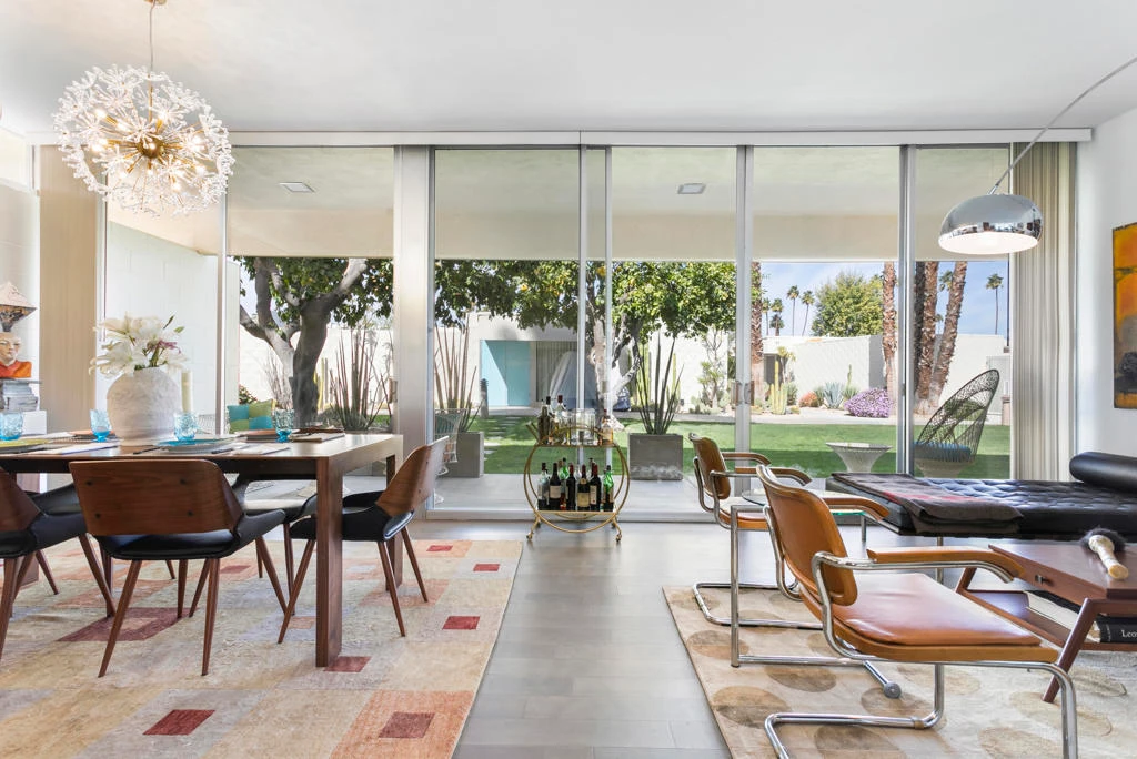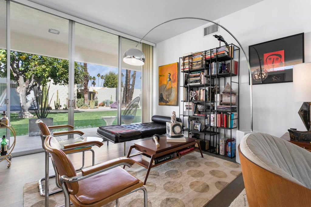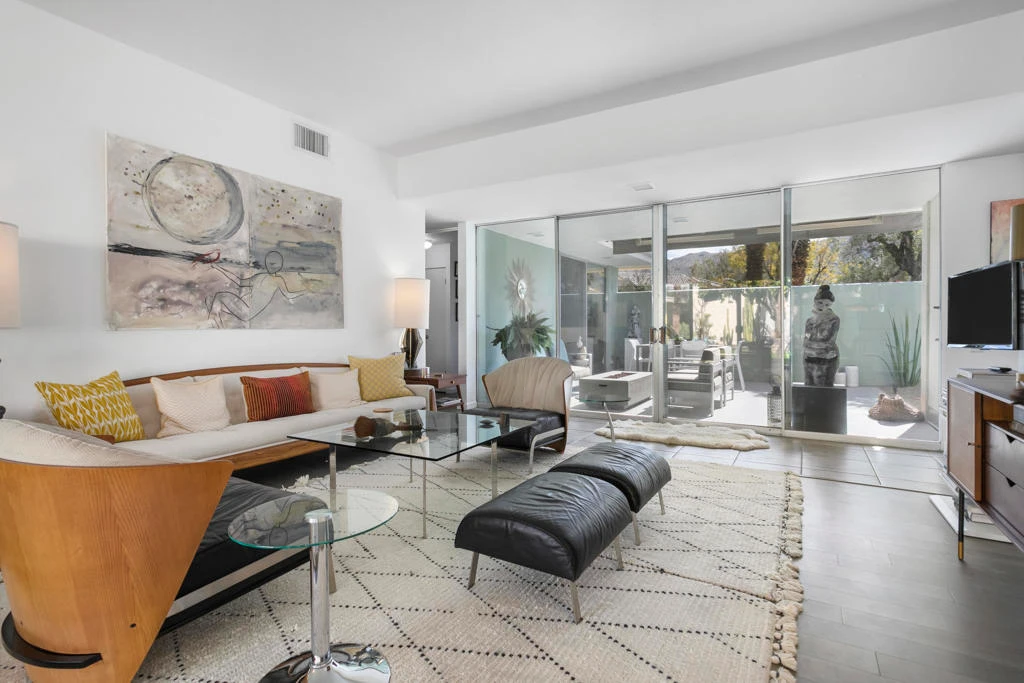 Discover one of the best values in Palm Springs with this beautifully updated 2-bedroom, 2-bath residence--an exceptional opportunity to own a piece of architectural heritage. Designed in 1964 by Richard E. Harrison and among the original homes in the sought-after Seven Lakes Golf & Country Club, this property seamlessly combines iconic mid-century design with modern upgrades. The thoughtfully renovated interior features a sleek, contemporary kitchen and stylishly upgraded bathrooms, complete with high-end finishes and premium appliances. Expansive walls of glass flood the home with natural light, enhancing the open-concept layout and creating a seamless indoor-outdoor flow--ideal for embracing the Palm Springs lifestyle. The flexible second bedroom easily serves as a guest retreat or home office, featuring large sliding glass doors that frame mountain views and open directly to a private courtyard. Designed with efficiency in mind, the home includes an upgraded electrical panel, new HVAC and solar energy system to help reduce utility costs. Additional highlights include a private garage with ample storage. Located within a secure, gated community, residents enjoy resort-style amenities including a clubhouse with dining and bar, multiple heated pools and spas, a Ted Robinson-designed golf course, plus tennis and pickleball courts--offering an elevated living experience year-round.