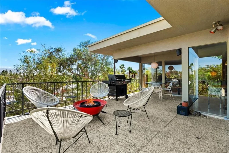 Welcome to the exclusive hillside enclave of Rimcrest, a stunning retreat where mid-century modern charm meets breathtaking panoramic views above Palm Springs. Built in 1967 and designed by Leroy Rose & Harold Carlson this rare freestanding detached condo offers the privacy of a single-family home with the ease of resort-style living. Spanning 1,600 square feet, this beautifully remodeled 2-bedroom, 2-bathroom residence also features a versatile flex space perfect for a home office, den, or bedroom for additional guests, easily made private with original refurbished shoji screens. Stylish updates include new eco-friendly cork flooring, designer-tiled bathrooms, and a sleek galley kitchen with new custom cabinetry and lighting. Step onto your expansive patio, an entertainer's dream, where you can soak in the mesmerizing desert landscape. And when it's time to unwind, a sparkling community pool and spa are just steps away. Furnishings available outside of escrow. Don't miss this rare opportunity to own a slice of Palm Springs paradise!