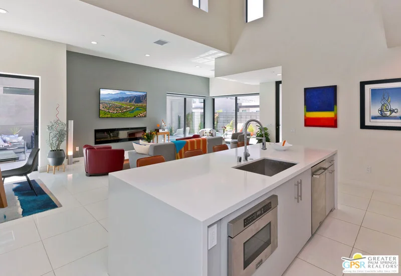 Luxurious Desert Living - Enclave at Baristo, A 3 bed, 3.5 bath home, conveniently located a short distance from downtown Palm Springs dining, entertainment, and amenities the desert offers, with lots of hiking trails, golf and sunshine skies. This 2544 sq. ft. home has an upper and lower floor primary suite, a 3rd en-suite bedroom (all with private patios), and several desk-study areas for when you must work. There are clerestory windows allowing for unfiltered lighting throughout, creating an even more open feel in the Gourmet kitchen with high-end stainless appliances. This home also features an electric fireplace, and large capacity washer and dryer, as well as an attached two-car garage. The perfect home for indoor/outdoor entertaining with the outside patio equipped with a Napoleon grill, firepit, and shower. And to finish off your days, enjoy amazing mountain views from your own private pool and spa. All utilities paid by landlord.