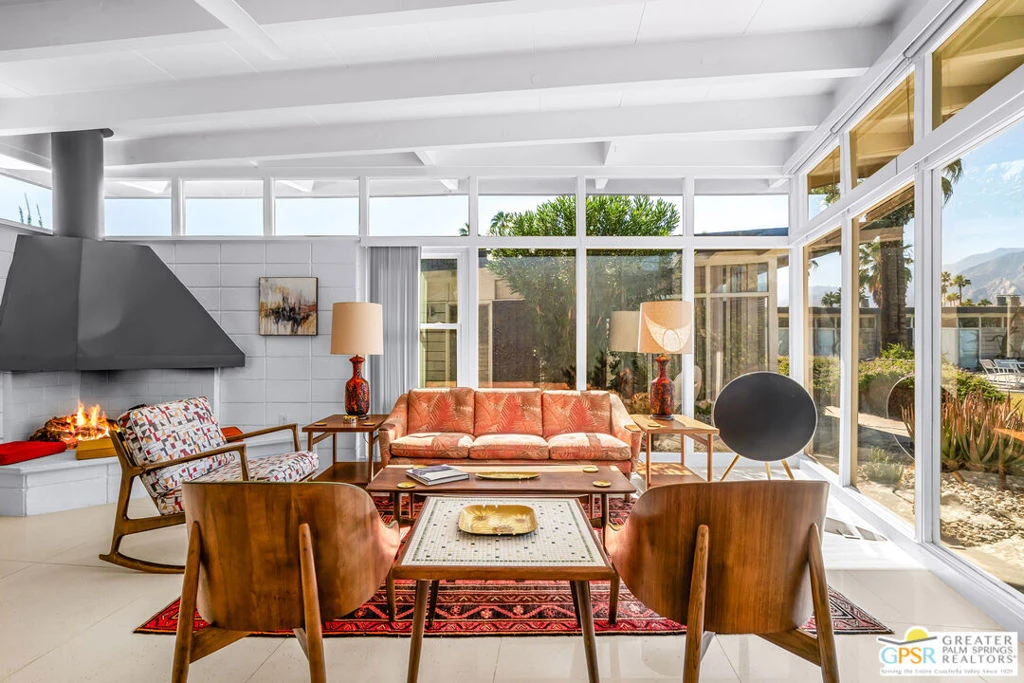 Outstanding opportunity to purchase at rarely available Desert Holly--a 14 unit, 8 building Historically Designated Mid-Century property (Mills Act reduced property taxes!) in the heart of Central Palm Springs-Sunrise Park designed and built by Long Beach builder & developer William J. O'Brien, Jr. and is sited close to downtown PS, PSP International and I-10. This stand-alone/detached home offers soaring walls of glass, original fireplace, renovated chef's kitchen and baths. Stunning terrazzo tile floors, upscale appliances , designated parking, 2 private patios and is just steps away from the community pool. This property is currently being used as a successful seasonal rental. Would make a great primary residence, second home or continue its current use as a rental/investment property. Outstanding condition with pride of ownership abounding. Move in, unpack and enjoy!