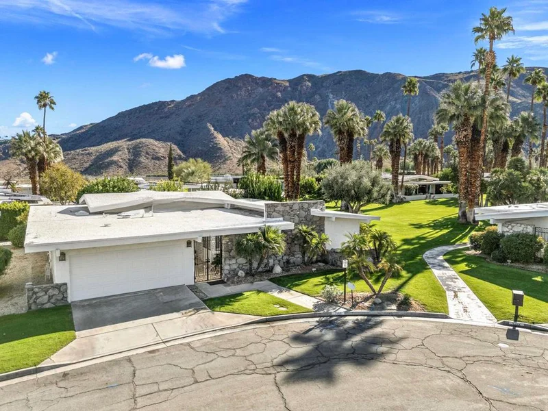 Discover the rare opportunity to own a freestanding corner-unit condo in the iconic Canyon Estates neighborhood on fee land, renowned for its classic mid-century design by famed architect Charles Du Bois and developer Roy Fey. With no neighbor to the right and surrounded by pristine landscaping, this home offers exceptional privacy and timeless Palm Springs style. This is the perfect blank canvas to create your ideal Mid-Century Palm Springs home!Boasting 2,593 SqFt, this spacious 3-bedroom, 2.5 bath residence showcases the best of California indoor/outdoor living. The generous floor plan flows seamlessly to an oversized covered patio, perfect for lounging, dining, and taking in the breathtaking mountain and palm tree views.Canyon Estates elevates resort-style living with an impressive list of amenities, including a golf course, tennis courts, 15 sparkling pools, 12 spas, clubhouse, fitness center, and beautifully maintained grounds that capture the essence of desert luxury.A truly unique property offering iconic design, privacy, and unbeatable amenities, this is Palm Springs living at its finest.