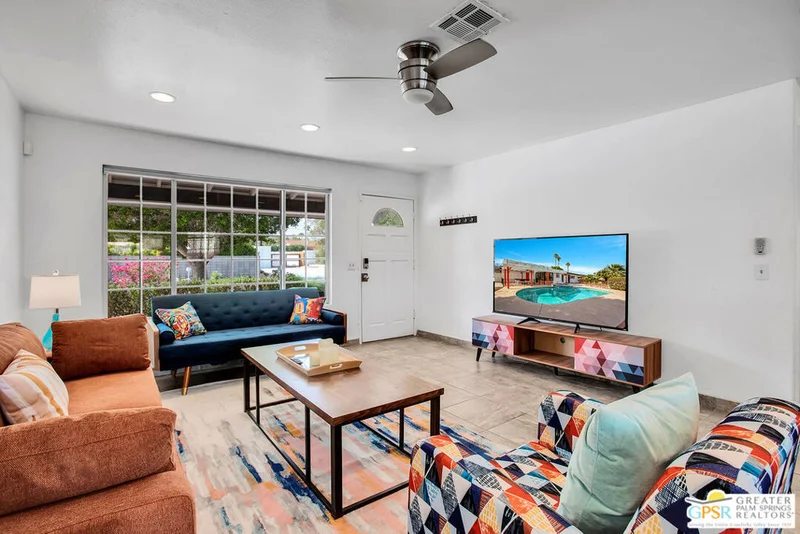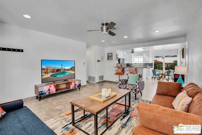 Located a short drive from all the restaurants and nightlife in Downtown Palm Springs, this 4-bedroom, 2-bathroom home offers a mix of modern comfort and outdoor beauty. This charming, turnkey home offers an open concept living area with plenty of space to host family and friends. Dual pane windows offer an abundance of natural light in the home and the updated kitchen provides ample storage and counter space to entertain large groups. Both bathrooms have been updated with quartz countertops, tile shower and tub enclosures, and contemporary fixtures. The backyard is an entertainer's paradise with a pool, spa, and a large yard for outdoor activities. An attached two-car garage makes parking and storage convenient and secure, and RV parking eliminates the need to rent additional space for a motor home. With its stunning views of the mountains and a blend of modern living and natural surroundings, this property is ideal for those seeking a serene escape, a family residence, or a comfortable home with all the amenities. Don't let this one get away. Contact me today for your own private showing.