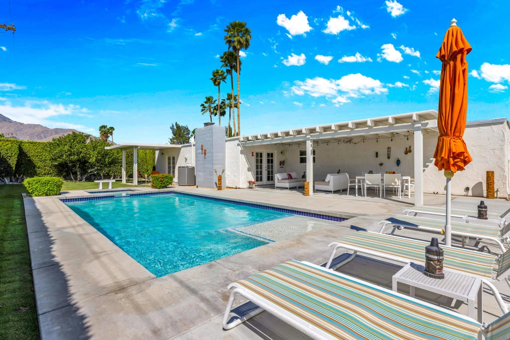 Beautifully upgraded 3-bedroom, 2-bath home featuring a private, resort-style backyard with pool and spa, mountain views, fruit trees, and multiple outdoor living spaces designed for relaxation and entertaining. Enjoy automated landscape lighting, Alumawood(r) patio covers, and immersive Sonos(r) audio that make outdoor living effortless.Inside, the home showcases extensive improvements including whole-house insulation, solid-core interior doors, updated electrical outlets, switches, and air ducts throughout, plus a fully renovated hall bathroom, and custom, birch utility and linen closet doors. The updated kitchen offers quality Samsung appliances including a dual-fuel convection range, microwave/vent, Bespoke counter-depth refrigerator (2025), as well as a brand-new Miele dishwasher (2026).Technology-forward features include a Crestron Home(r), whole-house automation system controlling lighting, patio shades, front door lock, and outdoor audio, along with a professional-grade WiFi and LAN network with CAT6 wiring in every room and connectivity for both Frontier fiber and Spectrum.Major system upgrades provide comfort and efficiency, including a Lennox Signature Series HVAC system, newer roof (2015) with elastomer recoating completed in 2024, REEM 50-gallon water heater, water softener connection, and Google/Nest smoke and carbon monoxide detection.Additional highlights include a fully insulated garage with its own heating and cooling system, LG washer and dryer, and epoxy floor. A concrete driveway and gated area for an RV offer many parking options. The neighborhood is currently capped for short term rental permits, but a Jr. Vacation Rental Certificate could be available. Check with the City of Palm Springs for details.