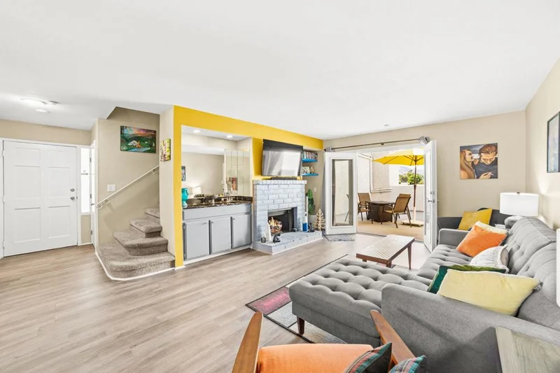 Bright, beautiful and fully remodeled 2 bedroom townhouse in Downtown Palm Springs. Caballeros Estates is a well maintained, secure complex walking distance to Arenas Road and all the attractions in the center of town. This townhouse style unit is arranged over two floors with three privarte terraces to enjoy the indoor/outdoor living that Palm Springs is famous for. The first floor features a remodeled kitchen with high end appliances and brand new counter tops, along with a separate laundry room and a half bath for your convenience. The dining area has its own terrace, and the luxurious living room has a wet bar, fireplace and a large south facing terrace with views over the pool, palm trees and the mountains beyond. The primary bedroom is upstairs with far reaching views along with a second bedroom with another terrace and a large fully remodeled bathroom. This unit has the best location within the resort-like complex! Secure subterranean parking for one car plus plenty of guest parking. 30 day minimum rentals. HOA is $581/month. Land lease is $211/month (until 2064).