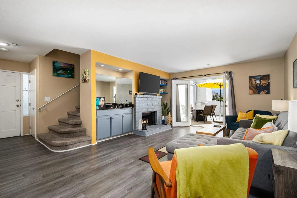 Bright and beautiful 2-bedroom townhouse ideally located in the heart of Downtown Palm Springs. Situated within the highly desirable Caballeros Estates, this gated and well-maintained community offers the ultimate in walkable desert living--just moments from Arenas Road, restaurants, shopping, and entertainment.This spacious two-story residence is designed for seamless indoor-outdoor living, featuring private terraces perfect for relaxing or entertaining. The main level includes a well-appointed kitchen with high-end appliances and updated countertops.The dining area opens to its own private terrace, while the living room offers a cozy fireplace, stylish wet bar, and a south-facing terrace with picturesque views of the pool, lush palm trees, and surrounding mountains.Upstairs, the primary bedroom captures sweeping views, while the guest bedroom features its own private terrace. A spacious bathroom completes the upper level.