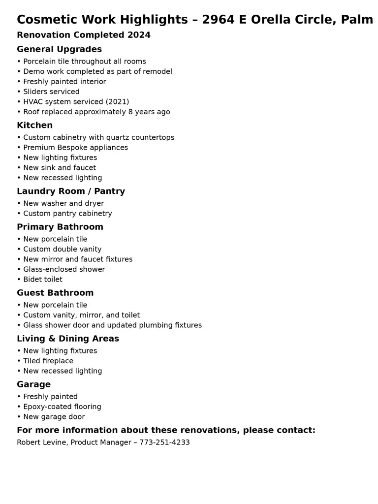 Beautifully remodeled 1970s Mid-Century three-bedroom home in the highly desirable Los Compadres neighborhood of South Palm Springs, situated on fee land. This move-in-ready residence features a thoughtfully designed floor plan, with one bedroom offering flexibility as a den, home office, or guest space, and a spacious primary suite with panoramic mountain views. Fully renovated in 2024, the home showcases new porcelain tile flooring throughout, a custom kitchen with quartz countertops and premium Bespoke appliances, and tastefully updated bathrooms with new vanities, mirrors, lighting, and fixtures. Additional upgrades include custom pantry cabinetry, recessed lighting, new window treatments, refreshed landscaping, and a new garage door with epoxy-finished flooring.The private backyard is a true desert oasis, featuring a boomerang-shaped Pebble Tec pool and spa, ideal for entertaining or relaxation. The home is part of an intimate 50-home HOA that maintains a private 2-acre park with a dog park, tennis courts, and pickleball courts, conveniently located near Beverly and Alta Loma Drive. The HOA covers and maintains the park only and does not regulate architectural changes, modifications, or use of the individual homes.Los Compadres Estates does not impose HOA restrictions on rentals or short-term rentals. The property is currently within the City of Palm Springs' neighborhood vacation rental cap. Buyers are advised to independently verify all short-term rental eligibility, permitting, and licensing requirements through the City of Palm Springs. Agent has an ownership interest in the property. A prior owner passed away in the home approximately two years ago. Buyer and Buyer's agent to verify all information and conduct their own due diligence. Conveniently located near shopping and grocery options along Highway 111, including Jensen's Finest Foods, Ralphs, and Ace Hardware, offering everyday essentials just minutes away.
