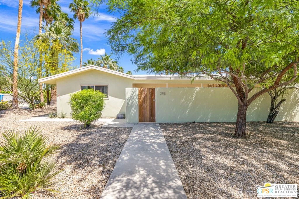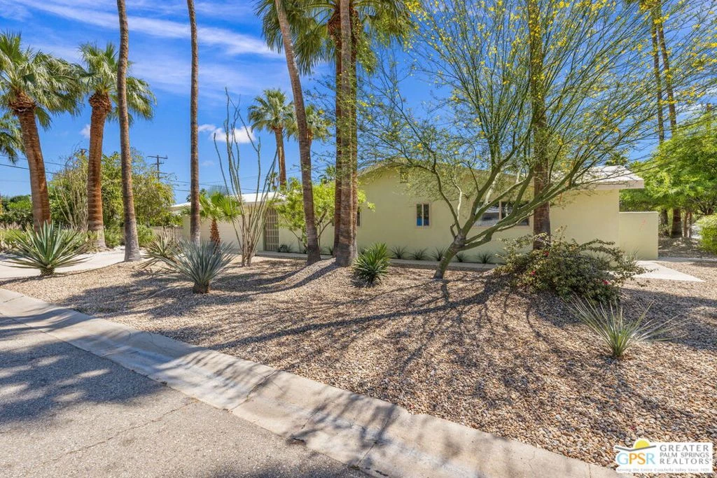 Set on a large corner lot in the Sunmor neighborhood of Palm Springs with three bedroom and four bathrooms and is FURNISHED, A walled front entry forecourt is your introduction to this thoughtfully re-imagined Palm Springs retreat. Spanning approximately 2,500 feet, the light filled interiors greet you with contemporary finishes that elevate the spaces with a fresh relaxed style, a warm pallet of pastels and professional curated decorative finishes, furnishings and art provide a relaxed sophisticated vibe and are offered with the home. Extensive improvements enhance both the interior and outdoor living spaces, with new floors providing a seamless foundation to the generously proportioned rooms, that include custom millwork, dual paned windows and French doors, custom tile and lighting. The completely re-imagined chef's kitchen is outfitted with high end appliances and features new custom cabinetry, fixtures, solid natural stone countertop and backsplash w task shelf, steps away informal meals can be enjoyed in the custom built-in upholstered banquette in rift oak with display shelving, an adjacent niche featuring an under counter wine cooler is a perfect platform for serving or bar.The primary suite features a spa-inspired bath with soaking tub, dual vanities, and glass block walled walk-in shower which have also been refinished. The grounds are thoughtfully re-imagined featuring native mature landscaping, a sparkling pool takes center stage, with a Bocce court, a hammock for an afternoon nap, an ample covered lanai features an open lattice and solid tongue and groove providing shade for extended entertaining. Centrally located in Palm Springs, capturing the essence of California desert living. This home is the perfect anecdote to your busy world. See Doc's tab for improvments.
