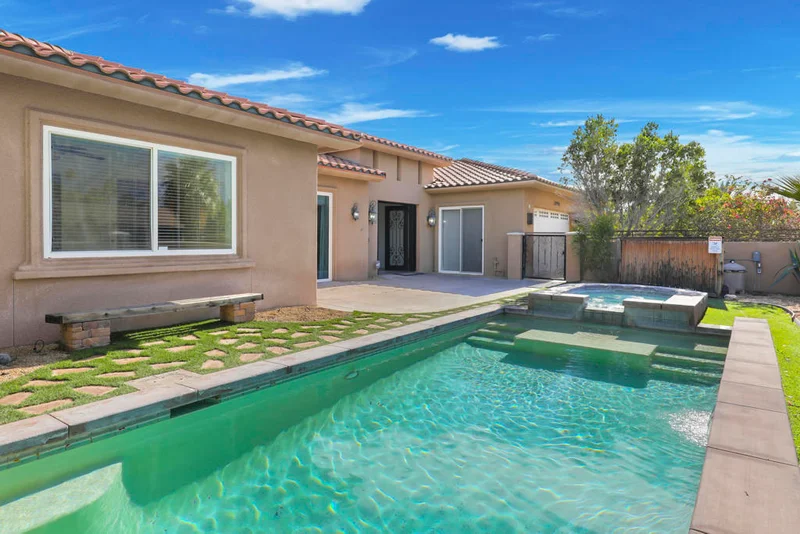 You choose to live in Palm Springs, California, because loving where you live matters, and because you embrace a lifestyle defined by vibrant culture, iconic downtown energy, endless blue skies, emerald palm trees, and dramatic mountain views. Because you are a buyer who values connection to your surroundings, your lifestyle, and the moments you create, this extraordinary residence at 2990 North Biskra Road is designed to complement those expectations. Built in 2006, this beautifully designed home offers 4 bedrooms, 3 bathrooms, and 2,603 square feet of thoughtfully used living space on a 10,019-square-foot lot, centered around a private aquatic courtyard with a pool and waterfall spa that naturally invites both Palm Springs-style entertaining and everyday enjoyment. Two bedrooms feature sliding doors opening directly to the courtyard, creating seamless indoor-outdoor living and stunning mountain views. The spacious three-car garage includes custom diamond-pattern flooring, a mini-split AC system, ample storage, and a sliding door with direct courtyard access. Upon entering through custom double-glass wrought-iron doors and a welcoming foyer, you are drawn to the crown molding, granite window sills, striking architecture, expansive windows, and the light-filled central patio, which is open, inviting, and perfectly positioned. The large wraparound patio features stamped concrete, accent areas for plants or decorative rock, and ample lighting for evening ambiance. The sliding doors to the primary suite, hallway, dining area, and kitchen all flow effortlessly into the courtyard, offering patio views from nearly every room. The grand kitchen is open and stunning, with granite slab countertops, custom borders, a granite backsplash, upgraded cabinetry with accents, and a custom range vent, ideal for both hosting and daily living. Throughout the home, cohesive finishes such as crown molding, baseboards, diamond-pattern tile with borders, and matching cabinetry and fixtures create a refined yet welcoming environment, while the laundry room offers a gas hookup, sink, generous storage, granite countertops, and a custom backsplash. Whether enjoyed as a private desert retreat or rented as a successful short-term rental, this home offers beauty, flexibility, and the true Palm Springs lifestyle, inviting you to create lasting memories and feel truly at home. Visualize the joyful laughs and memories you will make here as you call this...HOME.