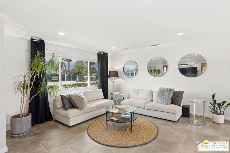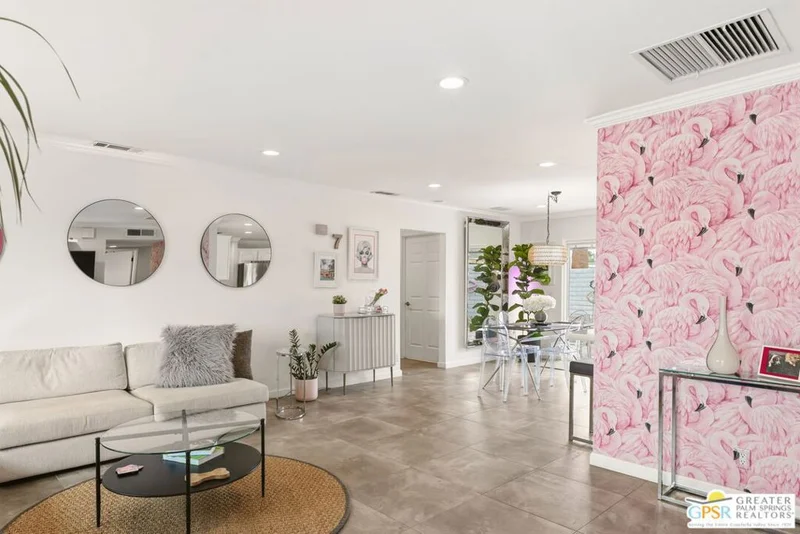 Live the Palm Springs lifestyle in this beautifully updated mid-century ranch home located in the heart of iconic El Rancho Vista Estates. This 3-bedroom, 4-bathroom home with detached casita and owned solar on land you own blends classic ranch-style architecture, modern comfort, and a fun, easy indoor-outdoor vibe all framed by wonderful mountain views. Inside, the light-filled living spaces showcase the relaxed appeal of mid-century ranch design, with clean lines, comfortable proportions, and an effortless flow that's perfect for both laid-back living and lively gatherings. The spacious living and dining areas connect seamlessly to the backyard, where the mountain backdrop adds to the home's unmistakable Palm Springs charm. The renovated kitchen is both stylish and functional, featuring new quartz countertops, a new backsplash, and new stainless steel appliances including a pot filler and built-in icemaker, along with ample cabinetry and generous prep space for cooking, entertaining, or casual everyday living. The home offers two primary suites, providing excellent flexibility for hosting guests or multi-generational living. The larger primary suite serves as a true retreat with abundant space, great natural light, a private en-suite bathroom, and a massive walk-in closet. An third guest bedroom adds further versatility for visitors, workspace, or hobbies, while the detached casita is ideal for guests, a home office, or creative studio. Outdoors, the private backyard is designed for enjoying the desert lifestyle, featuring a brand-new pergola, a large pool and spa with waterfall, and plenty of room for lounging, dining, entertaining, or letting pets roam and play. Surrounded by wonderful mountain views, it's a space made for both quiet mornings and festive Palm Springs evenings. With owned solar, new exterior paint, a water filtration system, numerous upgrades throughout, classic mid-century ranch character, and a location in one of Palm Springs' most recognizable and sought-after neighborhoods, this home delivers style, personality, and the true spirit of desert living.