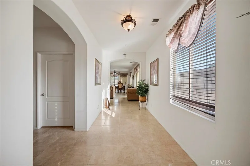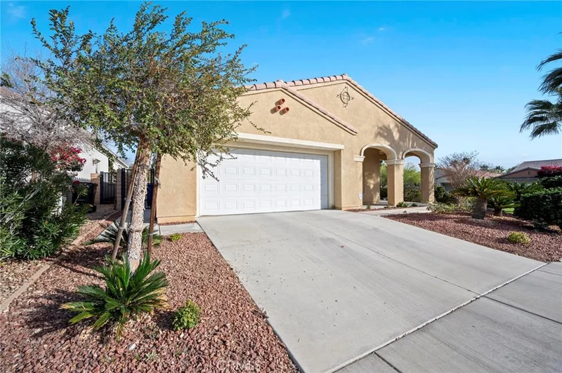 Discover serene desert living in this single-family residence located within a private gated 55+ community. This home is situated on a quiet corner lot and features low-maintenance desert landscaping with breathtaking mountain views. Inside, the inviting open floor plan is defined by elegant arched corridors and durable tile flooring throughout the living areas. The main living and dining space offers a cozy corner fireplace, perfect for everyday comfort. The functional kitchen features white cabinetry, a large center island, and Whirlpool appliances. The layout includes a third bedroom with a large arched window, serving as an ideal home office. The primary suite provides a private retreat with dual vanities, a separate soaking tub and shower, and two spacious walk-in closets. Outdoor living is simplified with a spacious concrete backyard and a covered patio for shaded relaxation. Residents enjoy access to a community pool and spa, and the community grounds are beautifully landscaped and well-maintained. Additional features include a dedicated laundry room with a utility sink and a finished 2-car garage. Recent updates include a new HVAC system, water heater, and garage door with motor, offering added peace of mind for years to come. This move-in-ready property is where low-maintenance living and resort-style comfort finally come together.