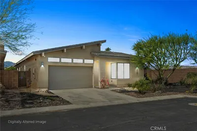 Welcome to your private desert retreat located in the highly desirable Escena Golf Club community in Palm Springs. This beautifully designed 2 bedroom + office/den, 2.25 bathroom home offers the perfect blend of modern comfort and effortless indoor-outdoor living. Step inside to an open-concept floor plan filled with natural light, soaring ceilings with exposed beams, and clean contemporary finishes throughout. The spacious kitchen features sleek cabinetry, a large center island with seating, and seamless flow into the dining and living areas—ideal for both everyday living and entertaining. The primary suite offers a serene escape with a spa-inspired bathroom, dual vanities, and a walk-in shower. A versatile office/den provides the perfect space for working from home, a guest room, or creative studio. Designed for true Palm Springs living, the backyard is a private oasis complete with a sparkling pool and spa, multiple lounge areas, and lush landscaping—perfect for relaxing or hosting under the desert sky. Located within Escena Golf Club, residents enjoy a beautifully maintained community centered around a stunning Nicklaus Design golf course, with convenient access to dining, recreation, and all that Palm Springs has to offer.