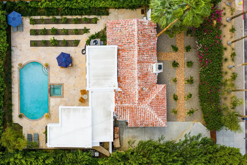 Casa del Passero | Furnished Lease - $14,444/MonthWelcome to Casa del Passero, a beautifully restored 1949 early California Spanish-style residence offered as a furnished lease in the coveted South Tahquitz River Estates neighborhood. Framed by breathtaking views of the San Jacinto Mountains, this character-rich home seamlessly blends historic charm with modern luxury.The inviting living area showcases restored wood-beamed ceilings, an original stucco fireplace, and an enclosed sun porch, perfect for relaxing or entertaining. The home offers two bedrooms, including a newly created primary suite with an en-suite bath, along with a second bedroom and stylish guest bathroom.Hand-laid tile and stone floors extend throughout both the interior and exterior spaces, creating a cohesive indoor-outdoor flow. The private, enclosed backyard is a serene retreat featuring a natural-style pool, in-ground spa, open patio deck, and lush citrus landscaping designed for maximum privacy and enjoyment.Extensively renovated, the property includes a new kitchen, laundry room, primary suite and bath, enclosed patio, restored ceilings, and new HVAC system. The home was meticulously restored by the Smiths, renowned for preserving iconic Palm Springs properties and featured in Palm Springs Life (May 2016).