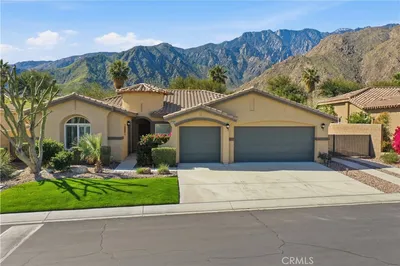 (Brokers Welcome ) (BUYER INCENTIVES ) Olea at Miralon new mid century modern homes. Miralon where life begins in Palm Springs. Single story 12 ft family room ceilings height, 3 bedrooms & 3.5 bathrooms, office. 20 x 12 private pool. 2-car garage, relax in your oversize lot for entertainment enjoyment. Gourmet Kitchen with Cafe Stainless Steel appliances package, Standard white Thermofoil cabinets throughout with concealed hinges and chrome handles. Beautiful Daltile one Quartz in Lucent white. Luxurious primary suites with floating cabinets large primary walk in closets with Quarte Lucent White with 6 " backsplash in primary bathroom & 4'' backsplash in all secondary's. This is where timeless design meets modern desert living. Miralon Association offers 97 acres of open space, 7 miles of walking trails. 3 dog parks and thousand of oil trees. Amenity center features state of the art fitness facility WIFI space, full service bar, chef demonstration kitchen resort style pool and spa with private clubhouse to enjoy. VIEW Orientation details: Framed mountain vistas that change color throughout the day. Southern orientation creating dramatic sunrise and sunset backdrops. Premium view lot minimizing rear neighbor visibility. Indoor/outdoor sight lines designed to pull natural beauty directly into living spaces. Golden hour patio moments that feel straight out of a luxury resort. Stargazing-ready outdoor living with minimal light interruption.
