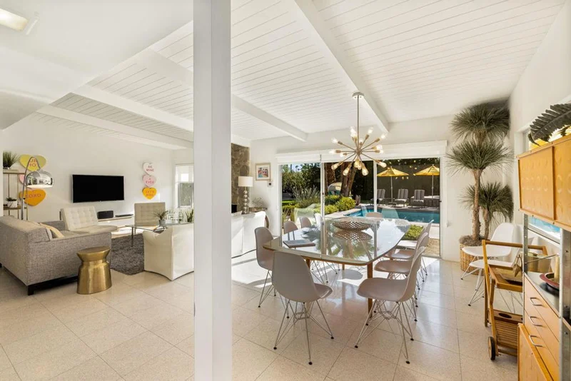 The iconic Big Boy Estate offers a rare opportunity to experience the quintessential Palm Springs lifestyle in one of the city's most celebrated architectural neighborhoods.Designed by renowned architect William Krisel and built in 1958 by the Alexander Company for Bob Wian, founder of the Bob's Big Boy burger chain, this historic Mid-Century property blends architectural pedigree, celebrity provenance, and effortless indoor-outdoor living.Located in the prestigious and historic Vista Las Palmas community, the home sits among some of Palm Springs' most famous examples of mid-century modern design. The neighborhood is known for its iconic architecture, stunning mountain backdrops, and storied celebrity past.With 3,076 sq ft of living space, the Big Boy Estate represents one of the larger Alexander floor plans. The property features 3 spacious bedrooms and 2 baths in the main house, along with 3 separate casitas--each with its own ensuite bath and private entrance. Furnished with wonderful art and period-correct pieces throughout, the home offers an authentic mid-century atmosphere. Upon entering the front door, the view opens straight through to the garden and pool, immediately announcing relaxation and fun.Set on a generous 16,988 sq ft lot, the estate's house and casitas create a magical setting that easily accommodates multi-generational living, large gatherings, or intimate stays. The Big Boy Estate has also been an award-winning, personally managed active short-term rental, helping offset family use, with the opportunity to continue this currently in place. The property is within easy biking distance of lively downtown Palm Springs.Behind the walled and beautifully landscaped grounds lies a sparkling saltwater pool, spa, putting green, and expansive gardens. Towering palms frame breathtaking panoramic mountain views while birdsong fills the quiet morning air.The open floor plan features terrazzo stone floors, glass sliders, and a central stone fireplace, while clerestory transom windows create beautiful light and sightlines throughout the home.Turnkey furnished in classic Mid-Century style, every detail of this property has been meticulously cared for. Since purchasing the home in 2017, the current owners have completed multiple upgrades to thoughtfully preserve the Krisel vision while adding modern comforts. The Big Boy Estate seamlessly combines the charm and character of classic modernist architecture with today's high-tech conveniences.