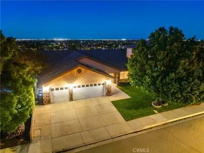 Fully upgraded former model home—this home is nothing short of elegant! This stunning, energy-efficient West Palmdale residence offers over 2,740 sq ft of beautifully upgraded living space. A newer build with exceptional curb appeal, it features a versatile layout ideal for multi-generational living. Inside, you’re welcomed by high ceilings, expansive windows, and an abundance of natural light. The bright, open floor plan flows seamlessly from the chef’s kitchen—featuring quartz countertops, a massive island, and pantry—into the inviting living room with a cozy fireplace, creating the perfect space for entertaining. The main level offers a spacious primary suite with a spa-like walk-in shower, dual closets, and a dual-sink vanity. A secondary bedroom and office are connected by a convenient Jack-and-Jill bathroom. A dedicated indoor laundry room adds convenience, while the oversized two-car garage includes an EV charger-ready setup—no more waiting at public charging stations. The private upstairs suite includes its own living area, bedroom, bathroom, and kitchenette with separate access—perfect for an in-law suite, guests, a private retreat, or whatever fits your lifestyle. Step outside to an easy-care backyard with extensive concrete and custom design—ideal for gatherings or low-maintenance outdoor living. Located in a prime West Palmdale neighborhood within walking distance to Highland High School and close to parks, shopping, dining, the Antelope Valley Mall, and freeway access. Move-in ready and a rare opportunity—don’t miss your chance to call this exceptional home yours!