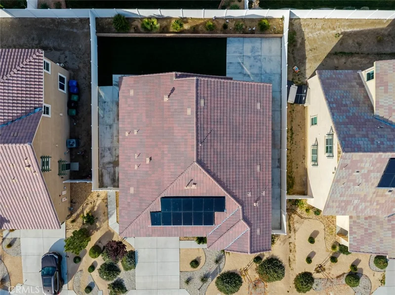 Welcome to 2107 Helconia Court, Palmdale, CA 93551. A modern, single-story home built in 2021, nestled in a quiet cul-de-sac within a newer community with no HOA. This beautifully upgraded 3-bedroom, 2-bath residence offers 2,218 sq ft of open-concept living space on a spacious 7,070 sq ft lot. Inside, an airy floorplan filled with natural sunlight is enhanced by laminate flooring throughout, recessed lighting, and blinds installed across the home. The expansive kitchen features extended countertops, ample cabinetry, a large pantry, and stainless steel appliances including the stove, dishwasher, and refrigerator. The primary bedroom offers comfort and sophistication with a spacious walk-in closet, a built-in large walk-in shower, and thoughtful owner-added upgrades. Enjoy year-round comfort with central AC and heat, paid-off solar, and a well-designed layout that includes a dedicated laundry room with washer and dryer included. Outside, the backyard features partial concrete work already completed, ideal for low-maintenance outdoor living and future customization. The property also includes a two-car garage and a sprinkler system for added convenience. This home blends contemporary style with practical functionality and is truly move-in ready with numerous upgrades already completed.