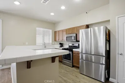 Welcome to this lovely 3-bedroom, 3-bathroom home with a versatile loft, located in the desirable gated community of The Vineyards. Perfectly positioned on a lush greenbelt and situated on a private corner lot, this home offers both comfort and tranquility. Step inside to find warm wood flooring downstairs and an open-concept layout that seamlessly connects the living room, dining area, and kitchen—ideal for everyday living and entertaining. The kitchen features recessed lighting, stainless steel appliances, and a peninsula with barstool seating for casual dining. The dining area opens to a private patio through sliding glass doors, creating an effortless indoor-outdoor flow. A convenient half bathroom and dedicated laundry room complete the downstairs. Upstairs, you’ll find a loft that can be used as a home office, playroom, or additional living space, along with all bedrooms including the primary suite with its own ensuite bathroom. Additional highlights include an attached 2-car garage, offering both convenience and ample storage. Residents of The Vineyards enjoy access to exceptional community amenities, including a volleyball court, half basketball court, 2 playgrounds, BBQ areas, grassy gathering space, ample guest parking, and beautifully maintained landscaping throughout. Ideally located near downtown Palmdale, this home offers easy access to shopping, dining, and schools. Don’t miss the opportunity to make this your next home!