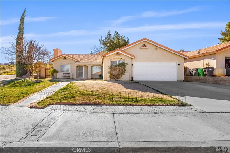 Move-in ready and Price Improvement!! Beautiful single-story corner lot home in the heart of Palmdale! Offering over 1,500 sq ft of bright, open living space, this 4-bedroom, 2-bath home features oak-tone laminate flooring, abundant natural light, and a cozy fireplace. The updated kitchen showcases white cabinetry, granite countertops, and flows seamlessly into the dining area. The spacious primary suite includes vaulted ceilings, patio access, dual vanities, and a walk-in shower with stylish ceramic tile. Three additional bedrooms provide flexibility for family or office use. Enjoy outdoor living with a built-in BBQ, waterfall feature, and multiple patio access points. Complete with a separate laundry area and a 2-car garage. Conveniently located near shopping, dining, Palmdale Regional Medical Center, and DryTown Water Park. Move-in ready and a must-see!