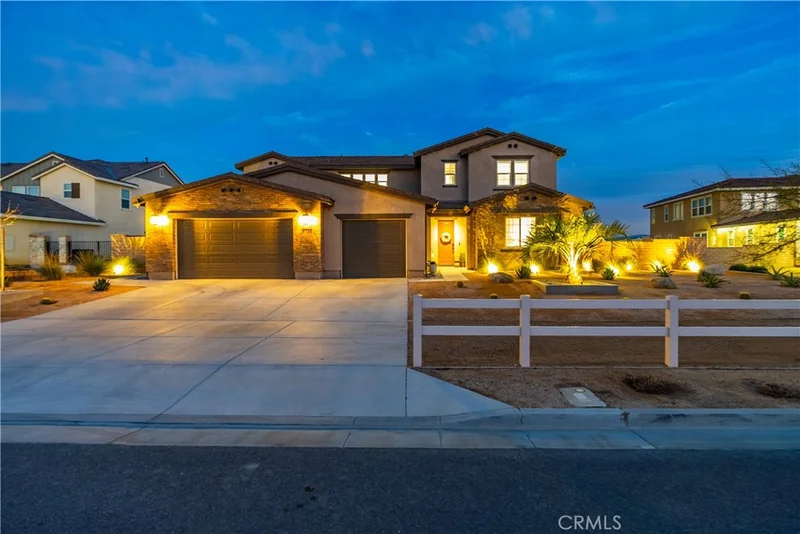 Welcome to an exceptional modern residence offering commanding panoramic views of Antelope Valley. Situated within a private gated community, this property delivers a rare combination of luxury, privacy, and elevated positioning designed to capture the valley's expansive skyline. From sunrise to sunset, the home's orientation provides unobstructed vistas that create a striking yet tranquil backdrop -- ideal for professionals seeking both sophistication and retreat. The elevated lot maximizes sightlines across the valley, offering city lights in the evening and wide-open desert scenery by day. Inside, refined upgrades reflect thoughtful design and quality craftsmanship. Features include upgraded appliances, a full LED lighting package, custom cabinetry in the living room and study, upgraded flooring, premium countertops, and designer tile finishes. Additional enhancements such as pendant lighting, a pot filler, custom closets, and shutters throughout complete the polished interior aesthetic. The outdoor environment is equally impressive. The expansive lot was designed to complement the views while offering resort-style amenities, including a 16x36 in-ground pool and a 9-person Artesian Isla Margarita spa. Whether hosting executive gatherings, family time or enjoying a quiet evening overlooking the valley, the setting provides a seamless blend of relaxation and prestige. Additional highlights: Landscaped front and rear grounds Fully paid solar system Two professionally installed EV charging circuits Oversized premium lot with optimal view orientation This property represents a rare opportunity to own a view-focused luxury home that balances executive-level comfort and entertaining.
