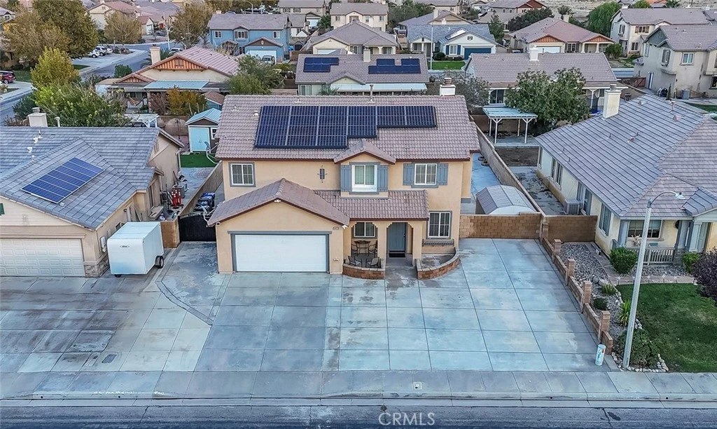Welcome to this beautifully kept and spacious 6 bedrooms 4 FULL bathrooms home with 2 BONUS ROOMS in the Antelope Valley with leased solar for energy savings ! Step inside to discover a bright, open layout with thoughtful upgrades throughout including newer stainless steel appliances. The main floor features two spacious living areas, perfect for entertaining, and relaxing. The open-concept kitchen offers plenty of counter space, a convenient center island, and direct access to the extended covered patio, making indoor–outdoor living effortless. Upstairs, you'll find 3 well-appointed bathrooms including the master bath along with 5 generously sized bedrooms including the master bedroom. Step outside to a large backyard designed for enjoyment and relaxation. It includes a soothing spa, multiple gazebos, and a storage shed for added convenience. With plenty of space to entertain, or unwind, the backyard truly completes this home. With thoughtful design, ample living space, and standout outdoor features, this home offers comfort, functionality, and room to grow. Don’t miss your chance to make it yours!