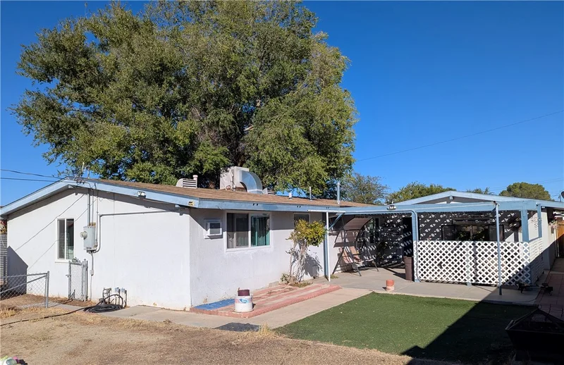 Charming Three Bedroom Two BathsHome in the heart of Palmdale on a large 8,300+ lot. New (2024) doublepane windows. The front entry opens to a expansive Living Room leadind to the Custom designed Kitchen with ample cabinet space and Pantry and Dining area. Large Closet Laundry space with washer & Dryer. Three confortable large Bedrooms all with walking closets, one full Bath and one 3/4 bath off the center hallway with plenty of storage space. Wood-like floors. The kitchen opens to the backyard delightful retreat exterior Gazebo Hot tub area. Located Near schools, shopping, golf and entertainment. Excellent opportunity & potential for a pool or for future ADU's (buyer to verify). Many updates including new (Double pane windows, air conditioning)system, North side fence.) made in the last 18 months. A must see to appreciate!