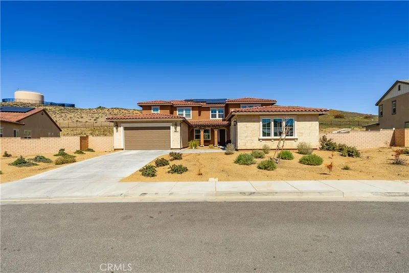 Rare multi-generational luxury estate in the prestigious gated community of Joshua Ranch in West Palmdale. Surrounded by breathtaking mountain and hillside views and miles of scenic biking and hiking trails, this expansive 5,279 sq ft residence offers 6 bedrooms and 5 bathrooms, including a private attached multi-generational suite with its own bedroom, bathroom, kitchen, and living area -- creating a fully independent living space ideal for extended family, guests, or flexible living arrangements. A welcoming courtyard entry and striking curb appeal set the stage for the grand interior. Inside, soaring ceilings, expansive living spaces, and abundant natural light create an elegant yet comfortable atmosphere designed for both everyday living and memorable entertaining. The thoughtfully designed floor plan offers multiple gathering spaces while seamlessly blending indoor and outdoor living. The great room, loft, and outdoor California room feature surround sound, creating the perfect setting for entertaining, celebrations, or relaxing evenings at home. Additional upgrades include a custom closet system for elevated organization and everyday convenience. Car enthusiasts and hobbyists will appreciate the 4-car tandem garage plus a separate single-car garage, offering exceptional parking, storage, or workspace flexibility. The tandem garage also includes two EV charging outlets, while energy efficiency is enhanced by a 24-panel owned solar system. The backyard is pre-wired for a future spa, allowing the opportunity to create your own private outdoor retreat. Located within the sought-after Joshua Ranch gated community, residents enjoy beautiful biking and hiking trails, scenic hillside and mountain surroundings, and a peaceful natural setting, all while being conveniently close to shopping, dining, and everyday amenities. Estate-scale homes with true multi-generational flexibility in Joshua Ranch rarely become available. Imagine evenings enjoying the peaceful hillside setting, mountain views, and the quiet beauty that makes this community so special. Experience the space, versatility, and lifestyle that make 39342 Stallion Drive a truly exceptional opportunity.