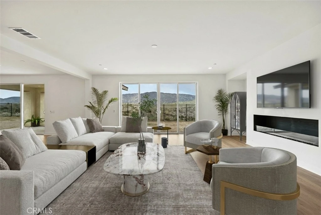 Welcome to this breathtaking estate home located in the prestigious, gated community of Joshua Ranch. Built in 2024 and tucked away on a quiet cul-de-sac, this stunning residence offers panoramic desert views, peace, and privacy on an expansive lot large enough for a future pool, spa, and outdoor entertaining oasis. This exceptional home features 5 bedrooms, 4.5 bathrooms, plus an office and spacious loft, making it ideal for multigenerational living or hosting guests. The thoughtfully designed floor plan includes a downstairs bedroom with an en-suite bathroom, along with a downstairs office accented by a custom barn door. The heart of the home is the gourmet kitchen, complete with a massive center island, upgraded quartz countertops, premium Bosch appliances, a five-burner cooktop, dishwasher, built-in microwave, additional single wall oven, and an upgraded walk-in pantry with a dedicated space for a second refrigerator or freezer. An indoor fireplace and covered patio create the perfect setting for both everyday living and entertaining. Upstairs, retreat to the luxurious primary suite featuring a private balcony with sweeping views, a spa-like en-suite bathroom with an oversized shower, dual vanities, and a generous walk-in closet. The upstairs laundry room includes a sink and is conveniently located near the bedrooms. Additional highlights include paid-off solar panels, an EV charger, and an oversized three-car garage. This remarkable estate blends modern luxury with serene desert surroundings—offering comfort, elegance, and unforgettable views.