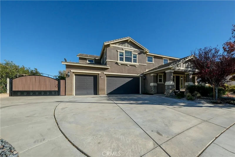Welcome to this stunning and spacious West Palmdale home offering nearly 4,000 sq ft of living space on a generous 0.33-acre lot. Designed for comfort and flexibility, this 5-bed, 4-bath property features high ceilings, large energy-efficient windows, and a dedicated office ideal for remote work. The spacious loft can serve as an optional 6th bedroom, bonus room, or media space, while the primary suite offers two walk-in closets. Enjoy pre-wired surround sound, ample storage under the stairs, and fully paid solar panels with dual HVAC systems for energy efficiency. Outdoor highlights include professionally landscaped yards, sprinkler systems, patio, pool-sized backyard, vegetable garden, and a gazebo pre-wired for spa installation. Gated RV parking, security alarm, and outdoor cameras provide added convenience and peace of mind. A rare blend of space, comfort, and lifestyle upgrades—don’t miss this exceptional home!