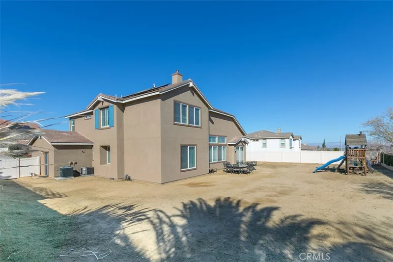 Enjoy comfortable living with relaxing hill and valley views in this freshly painted, well maintained 3,147 sq ft home featuring 4 bedrooms, 3.5 bathrooms, and a 3 car garage on an expansive 13,664 sq ft lot. Located within the desirable Westside Union School District and zoned for Quartz Hill High School, this property offers a rare combination of space, layout, and location. Step inside to a dramatic two story ceiling that opens from the first level to the second, creating a bright and airy atmosphere. The main level features a spacious primary suite with a private en suite bathroom that includes a large garden tub, separate shower, dual vanities, and a walk in closet. Upstairs you will find three additional bedrooms, each with ceiling fans, along with a versatile loft overlooking the kitchen and family room, ideal for a home office, study area, or media space. The open concept kitchen is designed for everyday living and entertaining, showcasing granite countertops, a large granite center island, stainless steel appliances, ample maple cabinetry, and a walk in pantry. The home also includes formal living and dining rooms, plus a comfortable family room with a gas fireplace. Plantation shutters and carpet flooring add warmth and style throughout. Additional Features Include: Lot offers potential RV access. Solar panels for energy efficiency and Tesla charger in the garage. Dual A/C units and tankless water heater. Indoor laundry room with gas dryer hookups and utility sink. Spacious backyard with open hill and valley views. Low-E dual pane windows and sliding glass doors. 17-inch porcelain tile flooring in main traffic areas. Grand 8-ft interior doors and recessed lighting. Pre-wired for ceiling fans and CAT5 data with structured networking panel, located in a fiber-optic-served neighborhood. Google Nest security cameras system. Finished garage with automatic opener. Concrete tile roof, post-tension foundation, and automatic front yard sprinklers with gas BBQ stub. Spacious walk-in closets throughout. A great opportunity to own a spacious home on a sizable flat lot in one of West Palmdale’s most sought after neighborhoods.