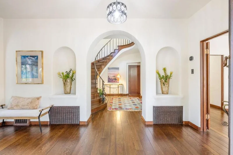 Stately Spanish Revival residence ideally situated on a quiet, tree-lined street in one of Palo Altos most desirable neighborhoods. Rich in character and timeless appeal, the home showcases beautiful architectural details throughout, reflecting classic craftsmanship and enduring style. The living room is a true focal point, highlighted by a dramatic vaulted ceiling with exposed beams, a large arched picture window that fills the space with natural light, and a fireplace that anchors the room with warmth and elegance. Thoughtfully designed living spaces flow comfortably for both everyday living and entertaining, while the homes layout offers a sense of privacy and tranquility. Outdoors, mature landscaping creates a peaceful setting for relaxation or gatherings, enhancing the homes connection to its surroundings. Located just minutes from top-rated Palo Alto schools, neighborhood parks, Stanford University, and the vibrant shops and dining of downtown Palo Alto, this exceptional property offers the perfect blend of architectural distinction, comfort, and convenience.